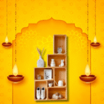 KRAYOG Five-Compartment Wooden Wall-Mounted Shelf – Ideal for Mugs, Kitchen Storage, and Displaying Collectible Figurines