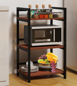 KRAYOG Wooden Display Riser Stand (3-Tier) – Brown Finish | Tiered Countertop Shelf Organizer for Kitchen Spices, Condiments, Perfume & Makeup | Multipurpose Display Rack