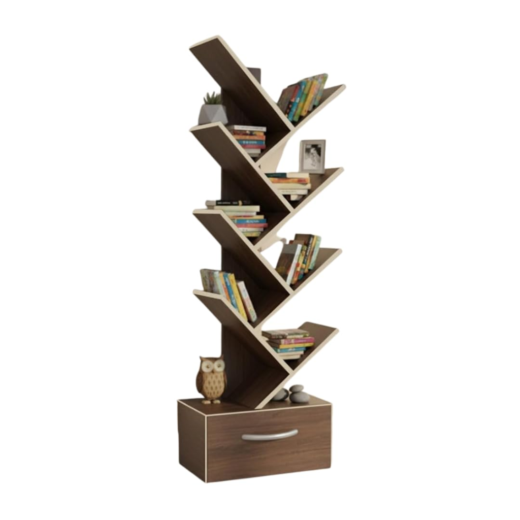 KRAYOG 8-Tier Tree-Shaped Wooden Bookshelf with Drawer – Freestanding Multi-Tier Rack for Living Room, Bedroom, Office & Study | 27.9D x 43.2W x 157.5H cm