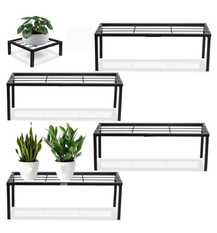 KRAYOG 2-Step Heavy-Duty Garden Plant Stand | Black Flower Pot Holder | Pack of 2 Single-Step Units