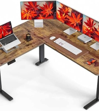 KRAYOG L-Shaped Electric Standing Desk | Height-Adjustable Single-Motor Sit-Stand Workstation | Ergonomic Home & Office Study Table with Spacious Desktop | DIY Assembly (Black & Brown)