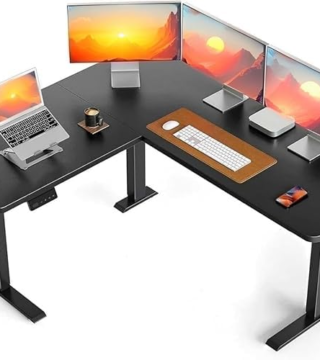 KRAYOG L-Shaped Electric Standing Desk | Height-Adjustable Single Motor Workstation | Ergonomic Sit-Stand Desk with Spacious Desktop for Home & Office | DIY (Black)