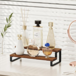 KRAYOG 2-Tier Wooden Display Riser Stand – Brown Kitchen Counter Shelf & Spice Rack Organizer for Perfume, Makeup, and Condiments