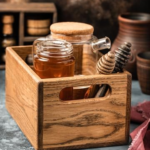 KRAYOG Rustic Wooden Kitchen Utensil Organizer – Countertop Cutlery & Silverware Holder Caddy (Brown)