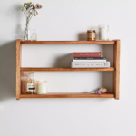 KRAYOG Rustic Solid Wood Wall-Mounted Bookshelf – Multipurpose Storage with Jar Holder for Living Room, Office, Kids’ Room, or Waiting Area