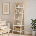 KRAYOG 5-Tier Teak Wood Bookcase with White Gloss Shelves – Modern Freestanding Storage & Display Rack for Home or Office, DIY Assembly, Open Shelving for Living Room & Study