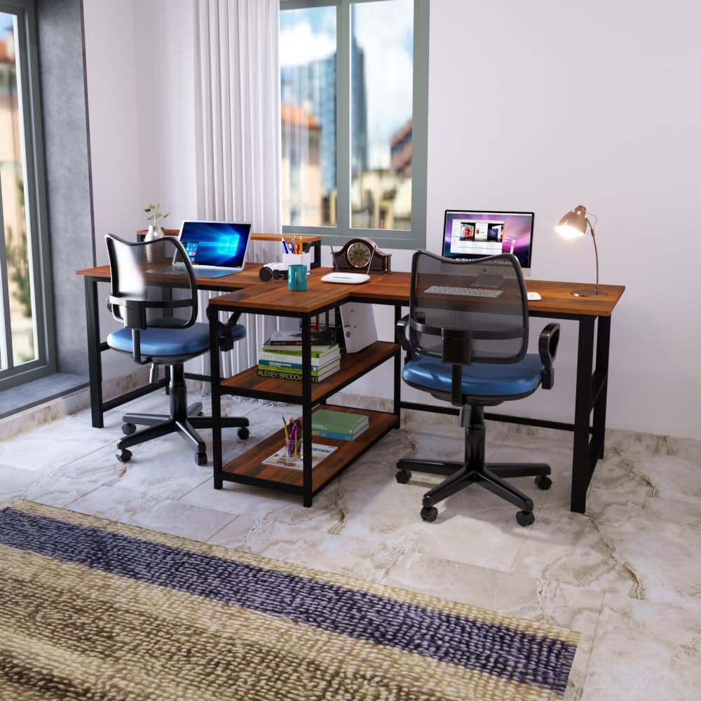 Krayog L Shaped Study Table for Students and Adults/Computer Table for Home-Office/Gaming Table/Computer Desk for Corner – Wood & Metal (Classic-Forest Dark & Black)