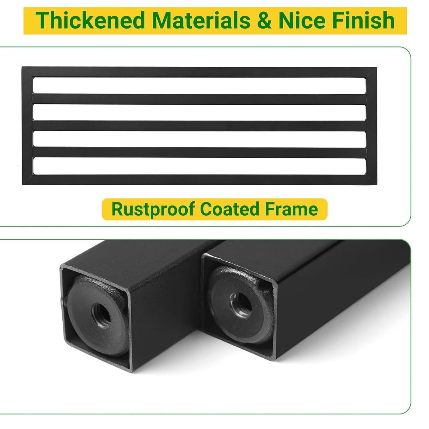 - Durable black powder-coated metal frame resists rust and withstands outdoor weather conditions