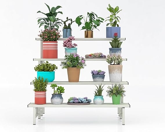 - Space-efficient stepped design maximizes vertical space while displaying numerous plants
