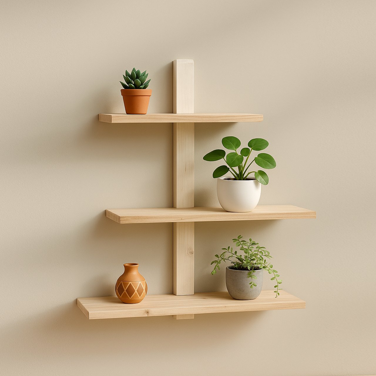 Enhance your living space with this modern Nordic-style wall-mounted shelf, crafted from premium pinewood. Featuring a 3-tier adjustable and detachable design, it offers flexible storage for books, décor, plants, and more.