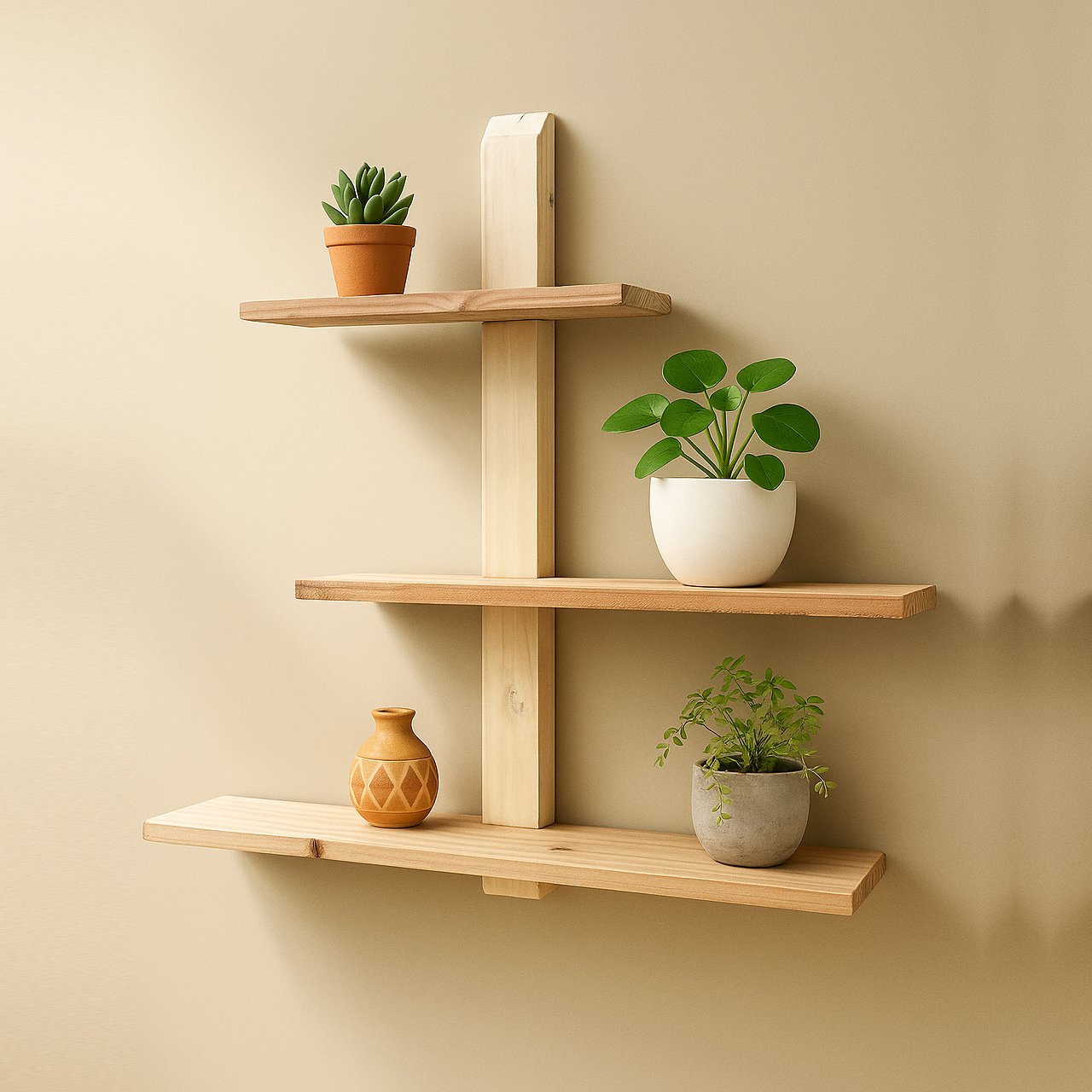Adjustable & Detachable Pinewood Wall Shelf – Modern DIY Shelf