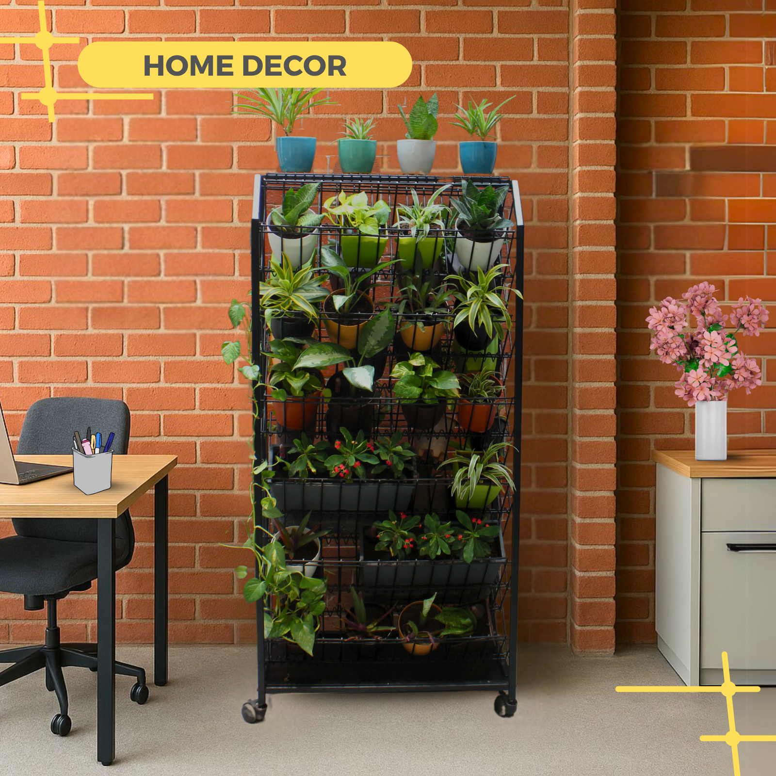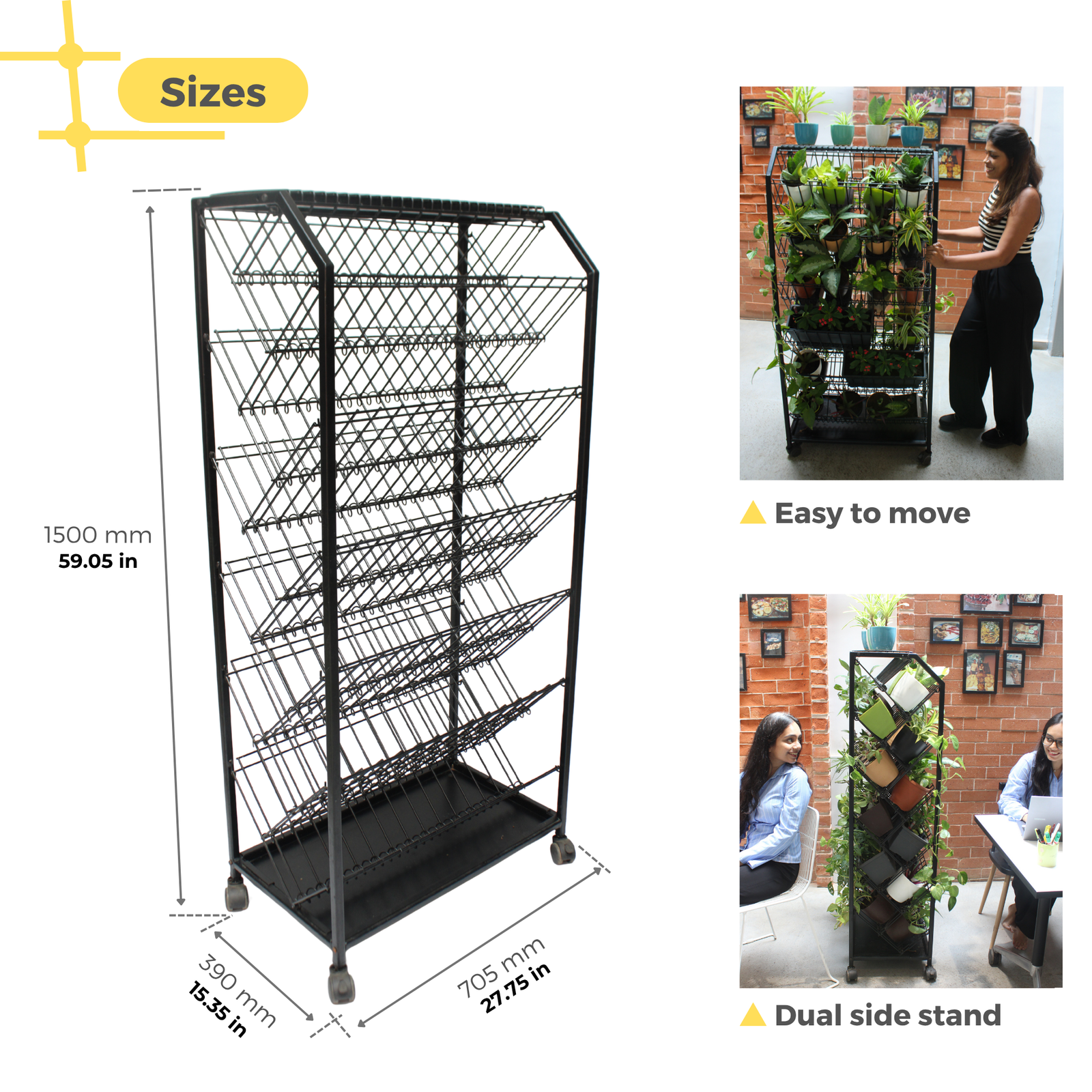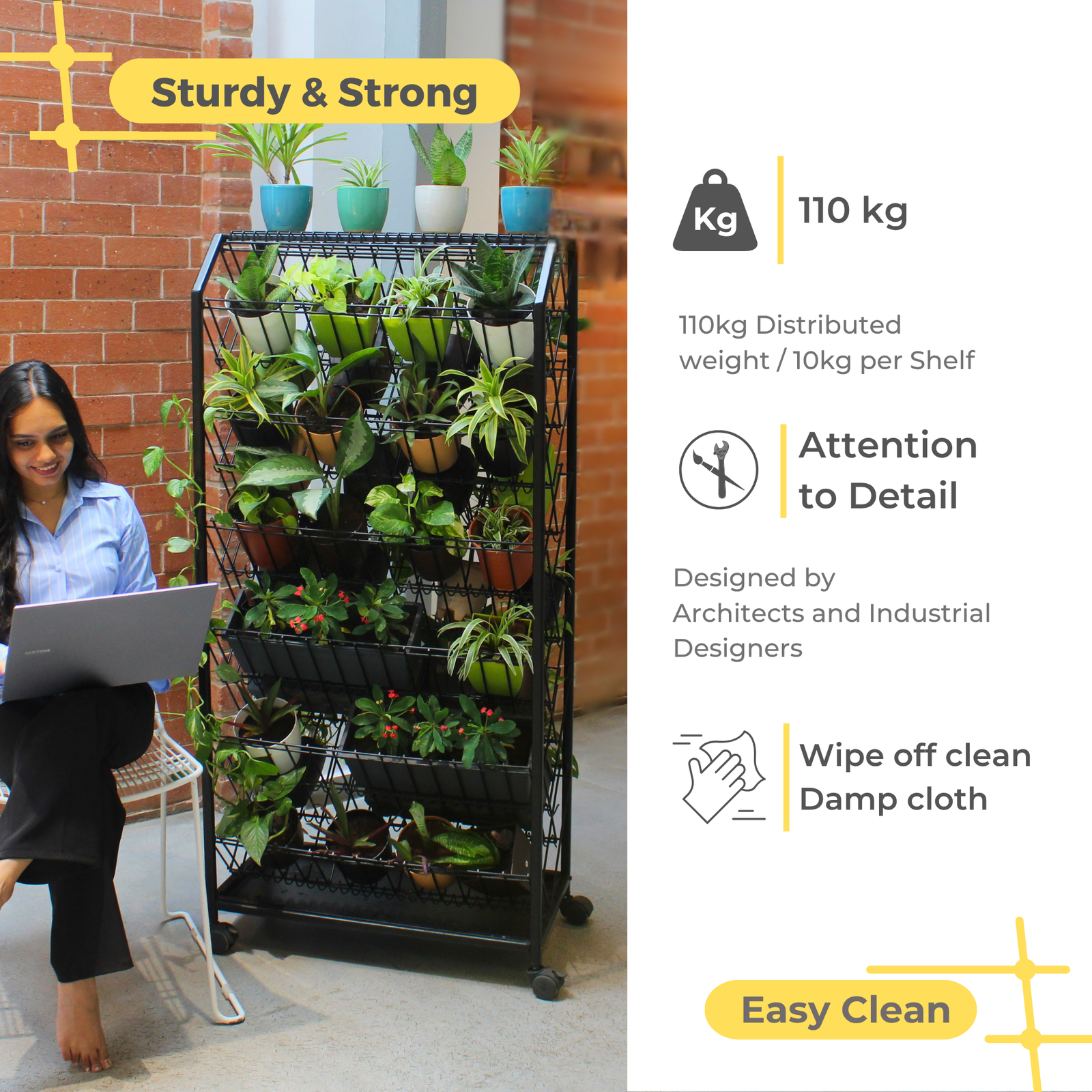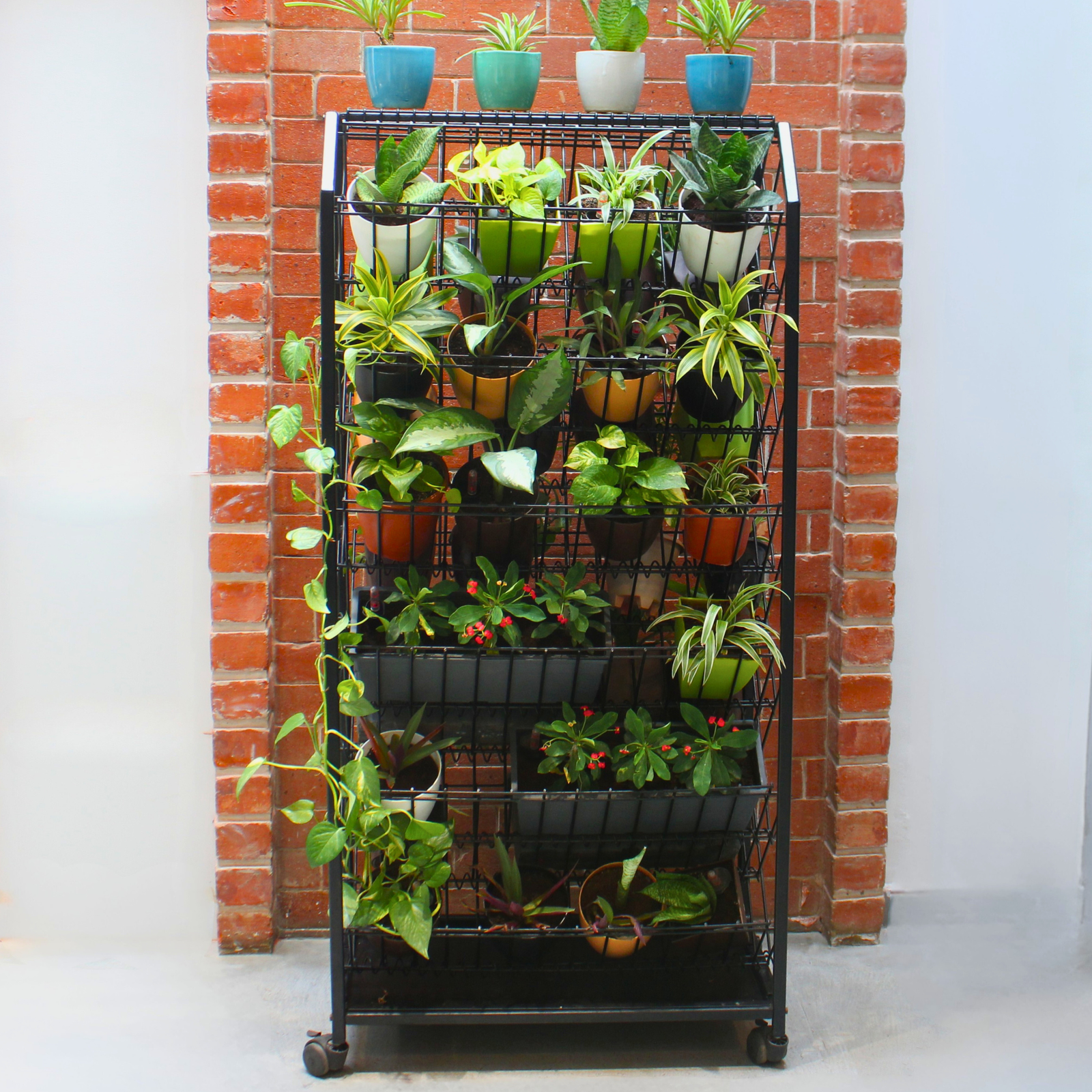 VERSATILE & MULTI-PURPOSE: Versatility is at the core of Greenest. Its ingenious design allows a green and stunning display on both its vertical surfaces making it a remarkably beautiful addition to any space. This vertical garden can nest 30+ potted plants making it a plant lover’s delight. A compact and innovative form of the shelves that become a stunning home for your plants or an enviable and unique space divider of any hospitality space like cafes, restaurants and hotels.