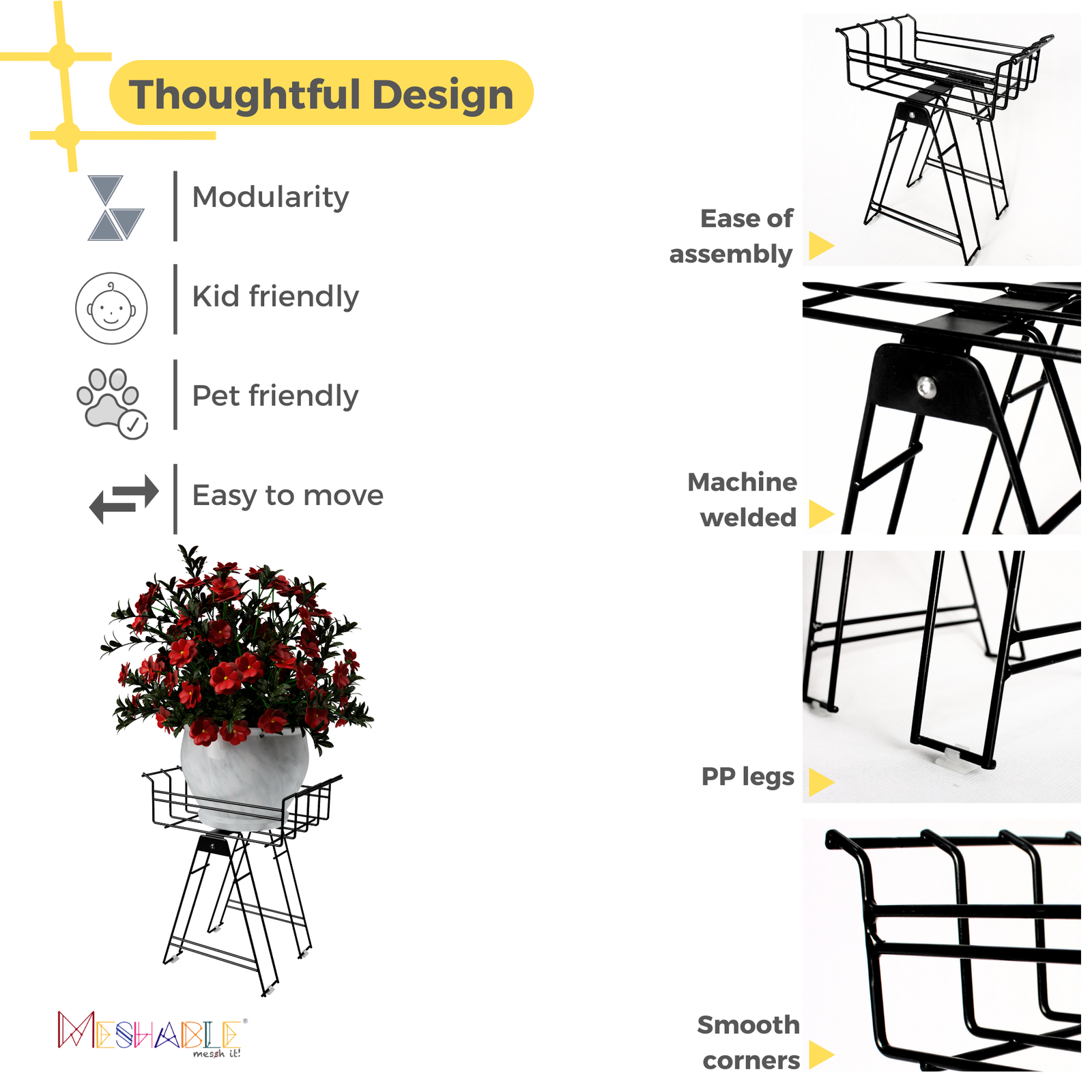 DURABLE- LONG RUST FREE LIFE: Durability is at the core of Nelumbo’s design. The highly rust-resistant GI wire mesh meticulously machine-welded and powder-coated in a controlled environment, ensures a long and rust-free life. This makes Nelumbo suitable as a durable plant stand for your balcony, allowing it to withstand the elements, be it rain or shine, without compromising its beauty. Let this rust proof pot stand be your constant companion, whether gracing your balcony, verandah, washrooms or your living room.
