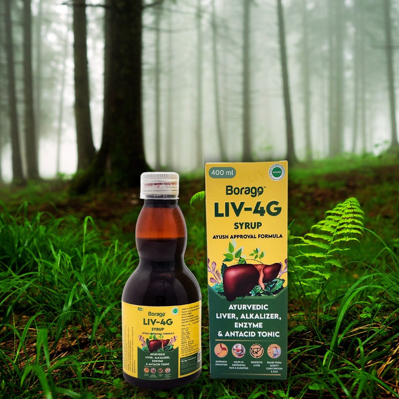 Borago LIV-4G Syrup is an ayurvedic formulation designed to support liver health and aid in digestion.