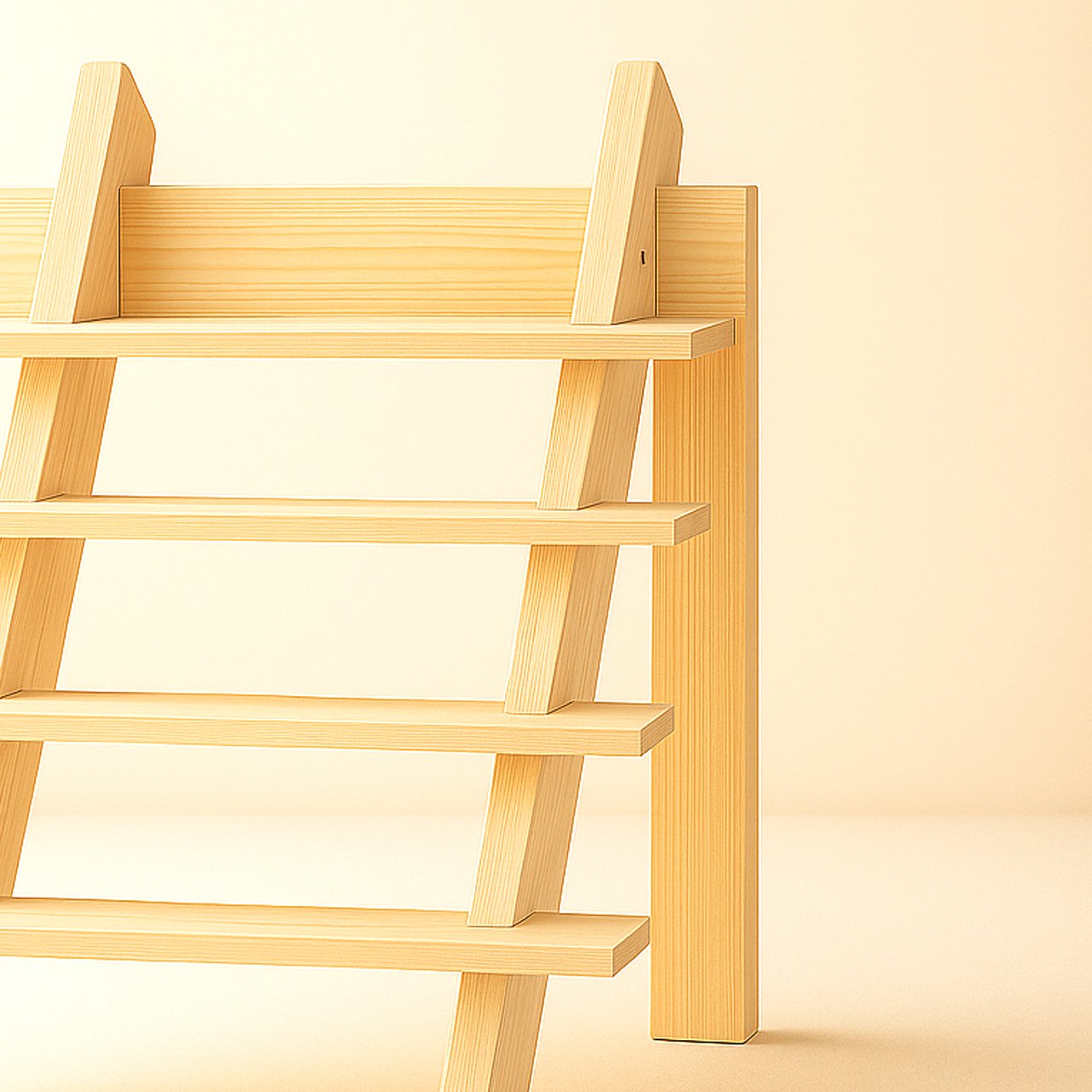 4-Tier Display DesignDisplays products at staggered heights for enhanced visibility and aesthetic appeal — just like compact free standing wood stairs for your items.