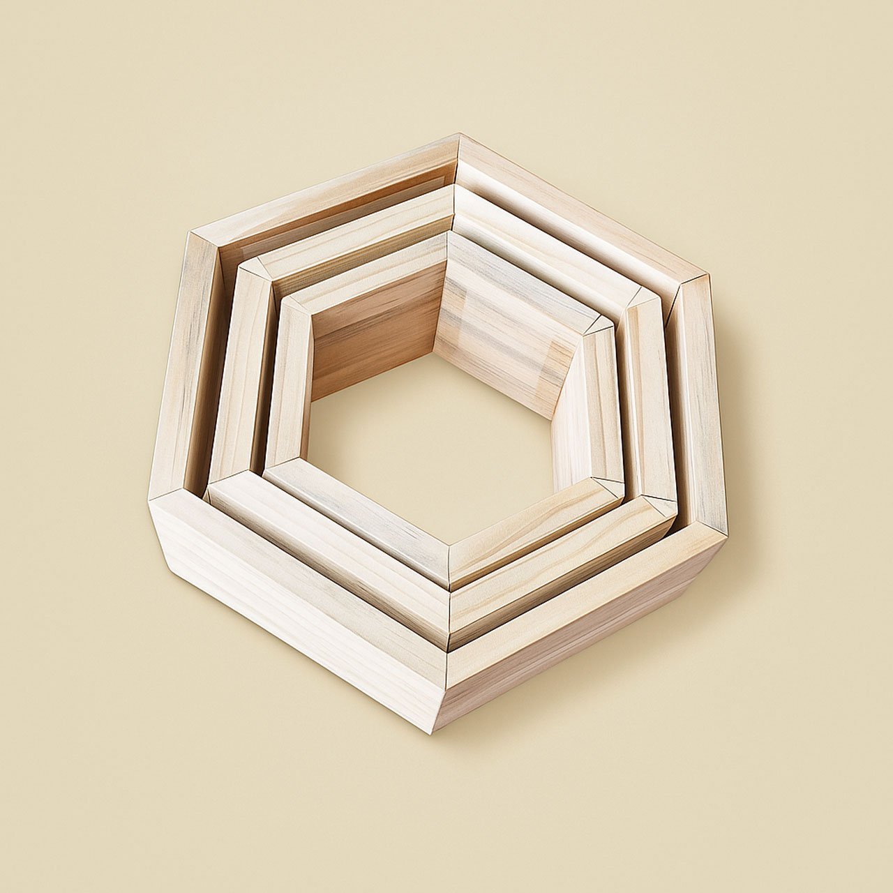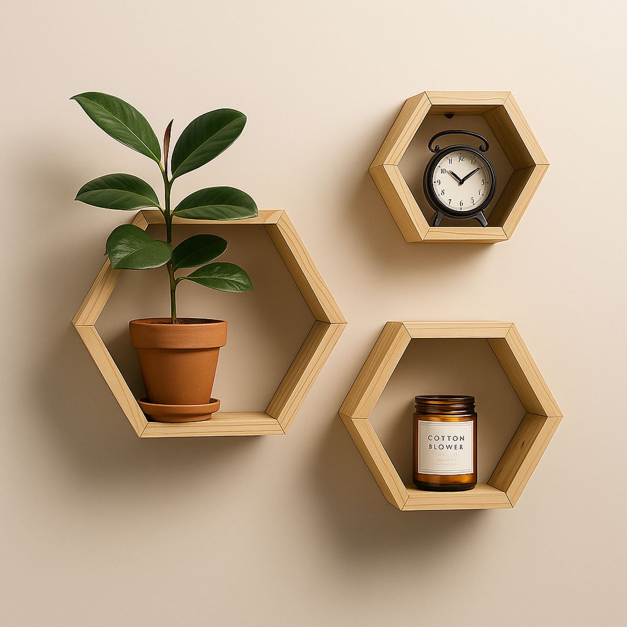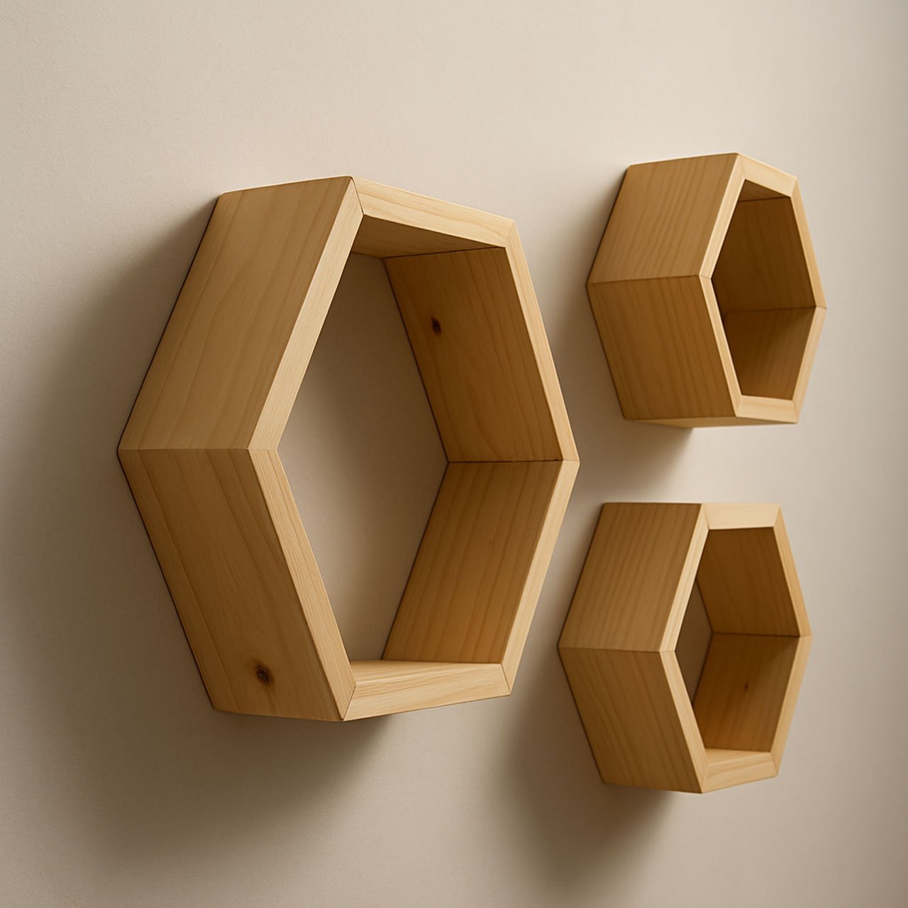 Hexagon Pinewood Wall Shelves (3-Pack) – Natural Color Floating Shelves for Bedroom & Kitchen | Rennover