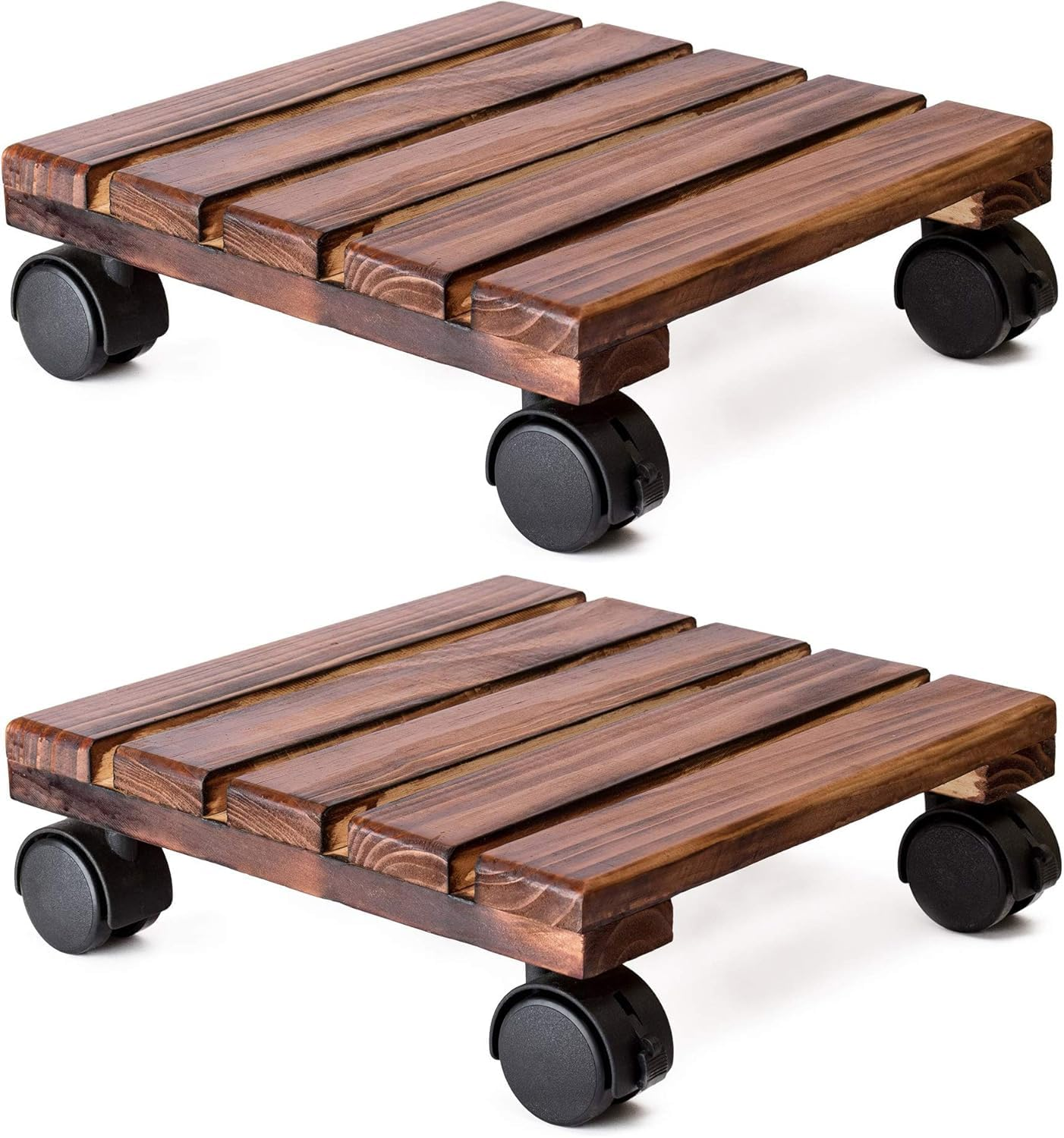 Enhance your plant display with this 12-inch heavy-duty Sheesham wood plant caddy set. Designed in a sturdy square shape, each wooden dolly features smooth-rolling, lockable wheels for effortless movement and stable placement. Perfect for indoor and outdoor use, these brown roller stands make it easy to reposition heavy flower pots while protecting your floors.