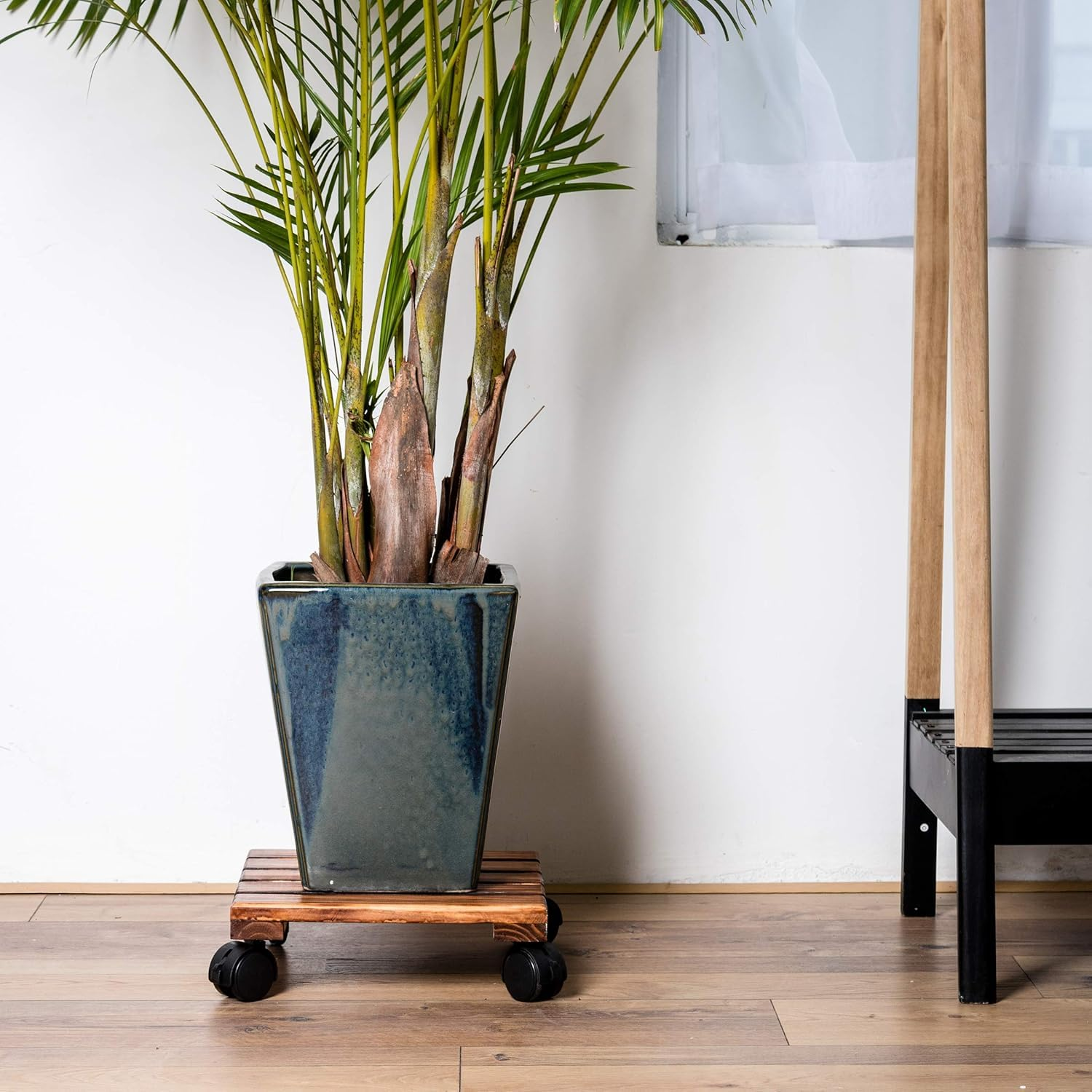 - ✅ STURDY AND DURABLE PLANT CADDY– Display your favorite flowers in classic style with this eye-catching plant stand with wheels. Handmade from high-quality NATURAL WOOD in AMBER COLOR that can easily HOLD UP TO 150kg resistant to harmful weather conditions so it’ll last for the years to come.