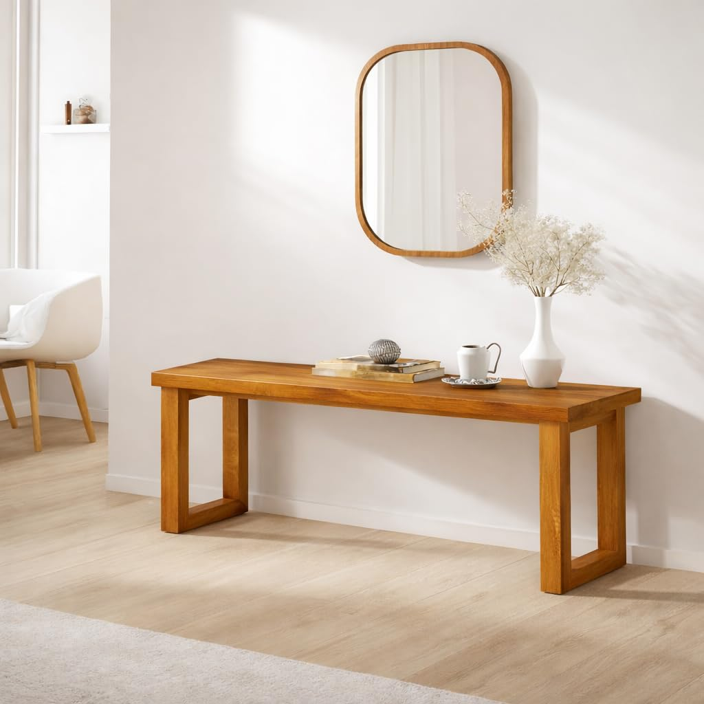 Upgrade your seating space with this 120 cm solid Sheesham wood 3-seater bench in a classic brown finish. Built for strength and long-lasting durability, it’s perfect for dining tables, living rooms, study areas, or drawing rooms. Its spacious design, sturdy construction, and timeless wooden look make it a practical and elegant addition to any home décor.