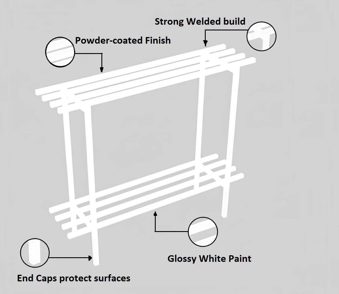 - 5. Easy to Assemble & Maintain – Lightweight and easy setup. Smooth powder finish allows easy cleaning — just wipe and go.