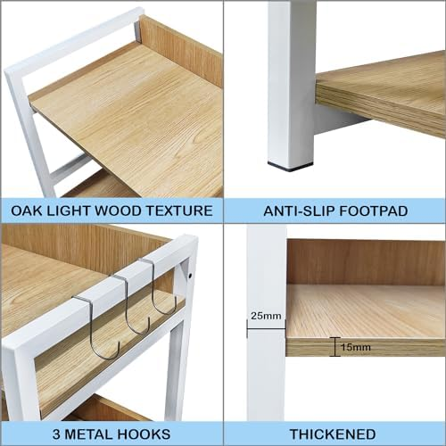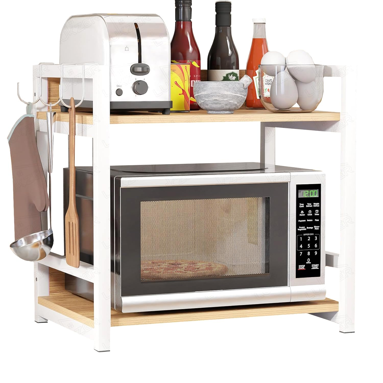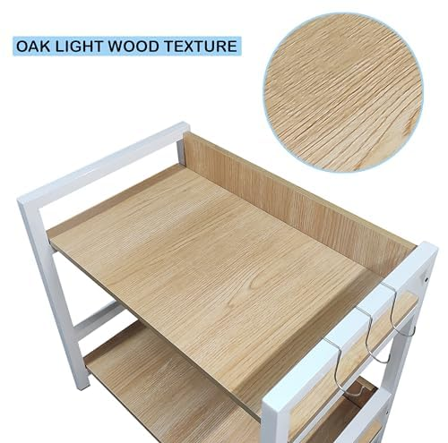 Featuring a sturdy metal frame with durable wooden shelves in a white and light oak finish, this 2-tier multipurpose storage rack offers both strength and style. Perfect as a microwave oven stand or versatile organizer, it maximizes space while keeping your kitchen, living room, bedroom, or office neatly arranged