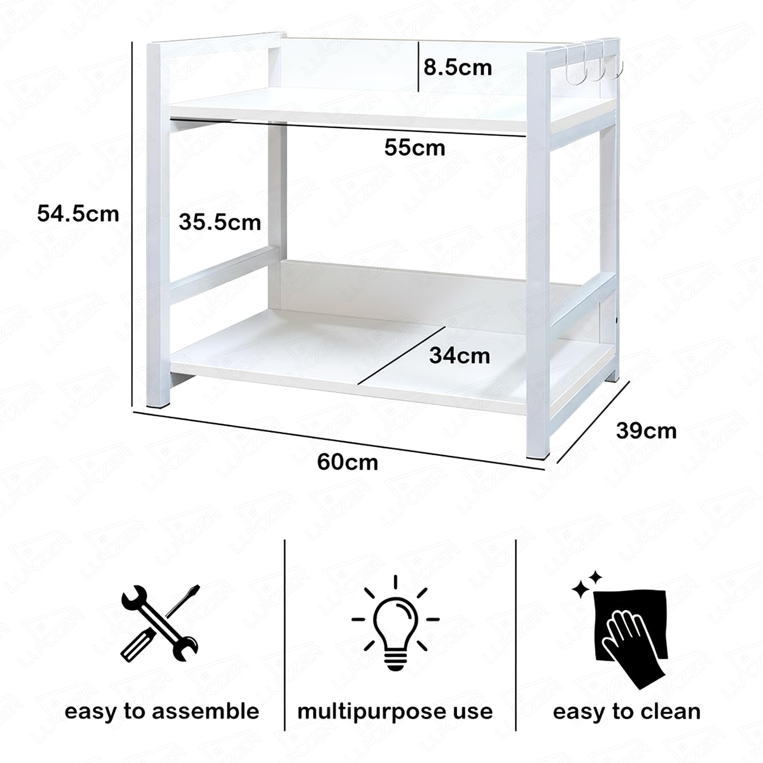 - Double-Layer Storage Rack for Every Space: The Lukzer 2 Layer Rack offers enhanced storage capacity for homes, offices, and commercial spaces. Ideal for organizing microwaves, cookers, kitchen utensils, office supplies, or display items — combining style and utility in one sturdy frame.