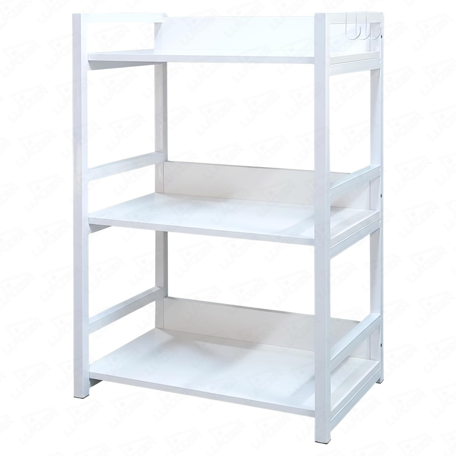 Upgrade your home organization with this 3-layer multipurpose storage rack crafted from a sturdy metal frame and durable wooden shelves. Designed as a space-saving microwave oven stand, it offers ample storage for kitchen essentials, décor, books, or office supplies. The sleek white finish blends perfectly with modern modular kitchens, living rooms, bedrooms, and offices.