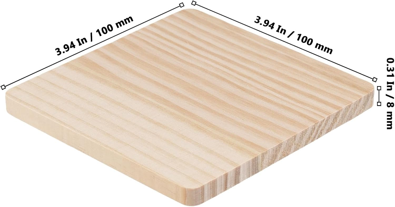 Pack of 8 unfinished 4-inch square wooden coaster blanks crafted from solid natural wood. Ideal for DIY crafts, painting, resin art, laser engraving, and custom décor projects. Smooth, sturdy, and ready to design your own unique creations.