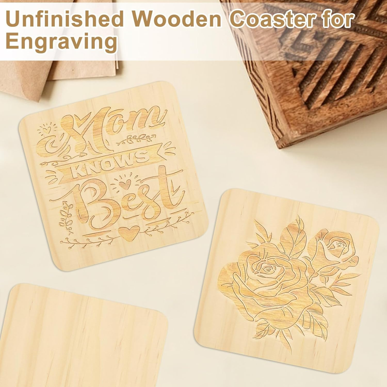 - DIY Ready Craft Coasters: Smooth natural wood surface — perfect for acrylic painting, laser engraving, pyrography, stamping, and resin art personalization.