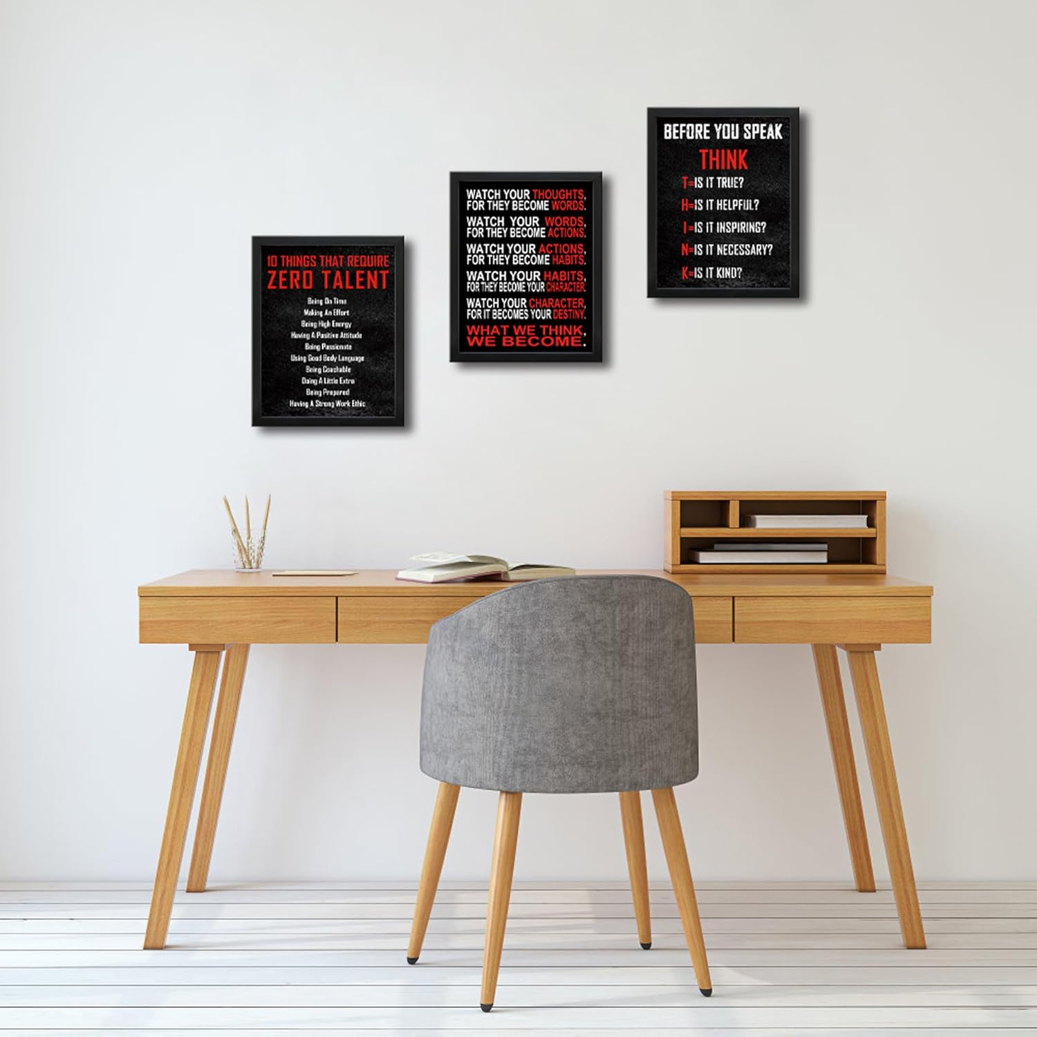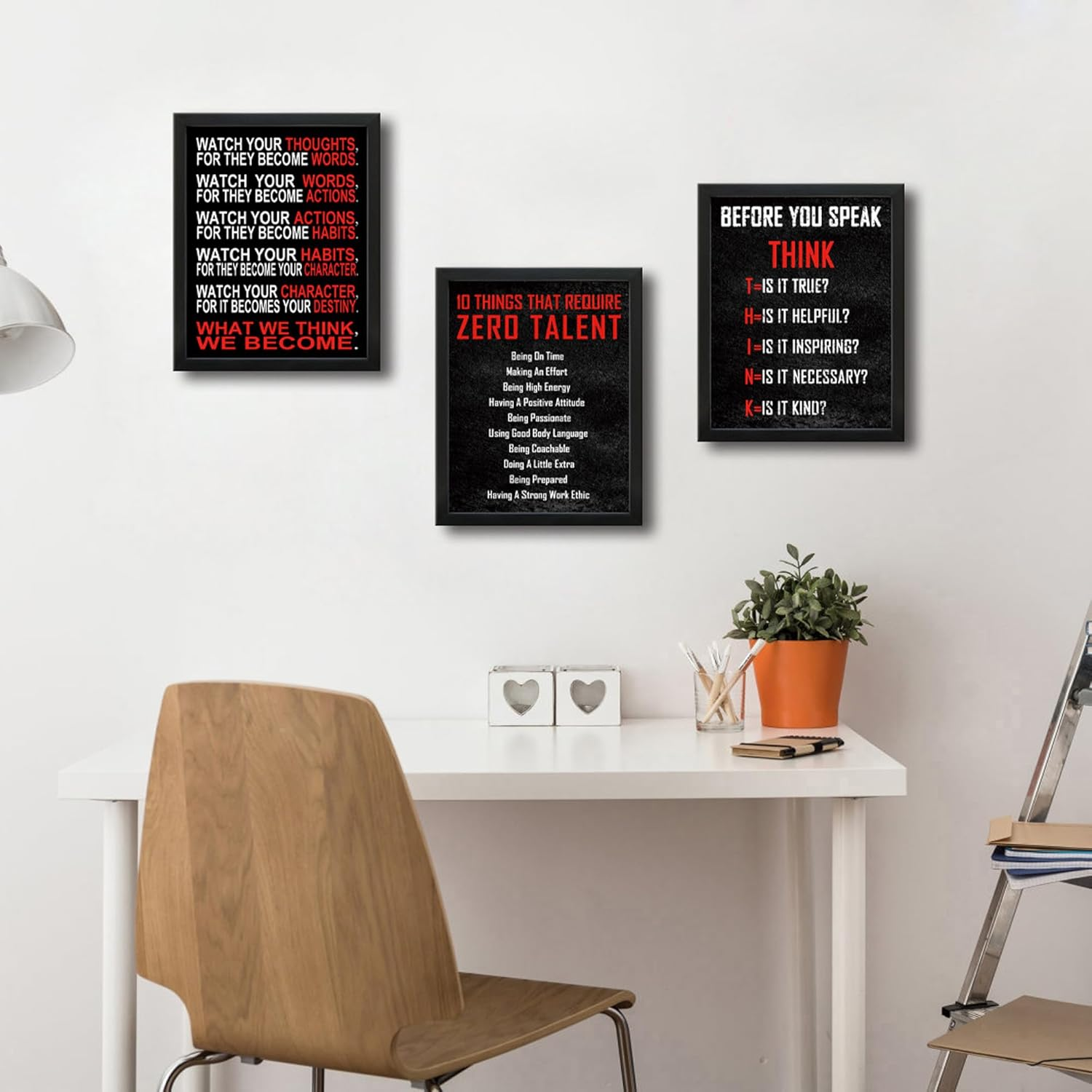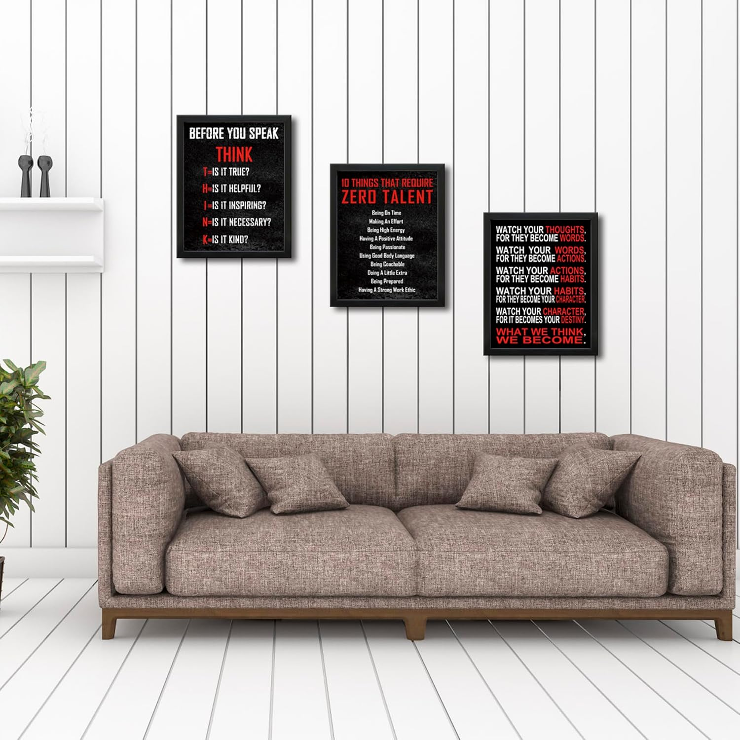 A stylish black framed 3-panel motivational canvas wall art set designed for modern home and office interiors.