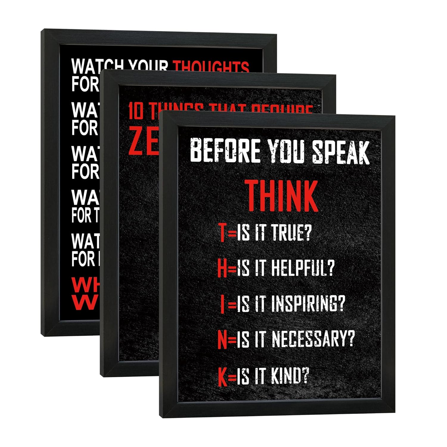 KRAYOG Black Framed Motivational Wall Art – 3-Panel Inspirational Quote Canvas Prints for Home or Office
