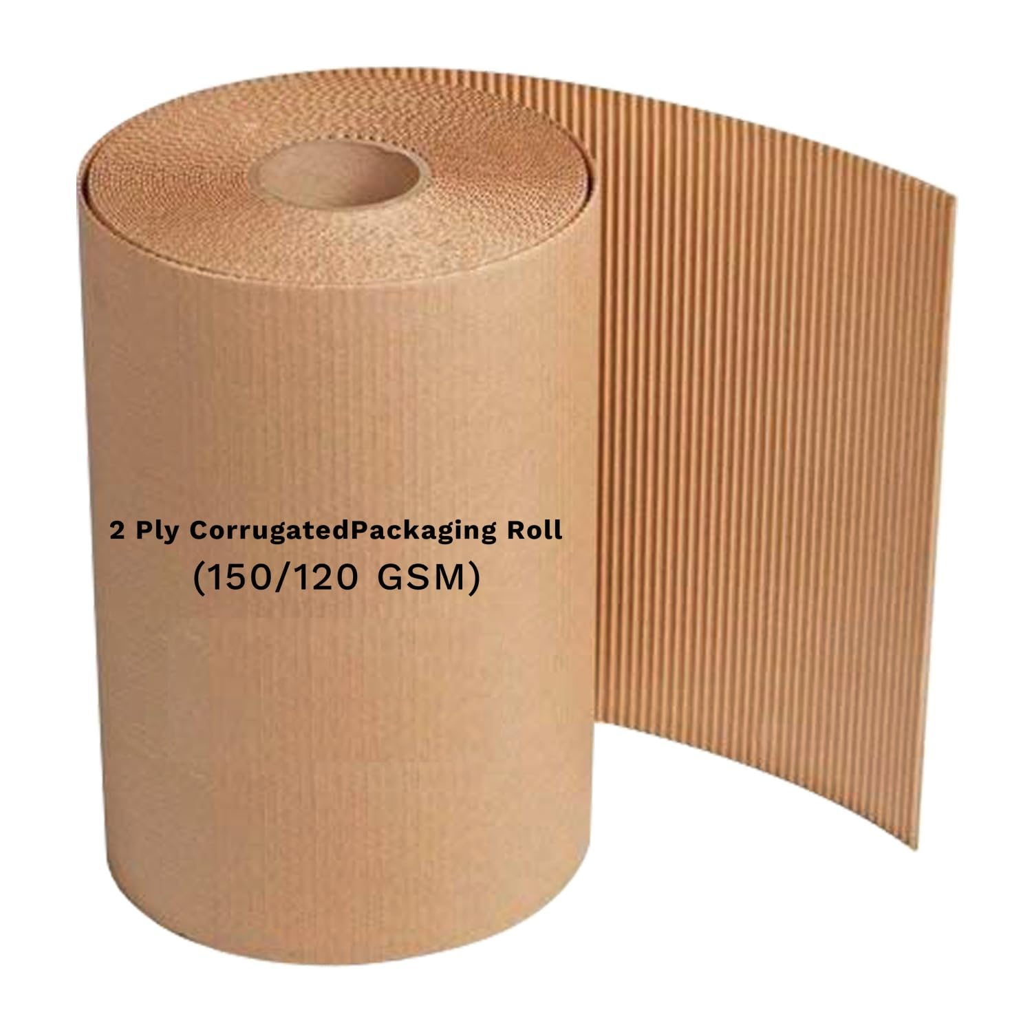Durable 2-ply brown corrugated paper roll crafted with 150/120 GSM strength for reliable cushioning and protection. Sized 24 inches x 5 meters, it is perfect for wrapping, packing, shipping, and safeguarding fragile items during transit or storage.