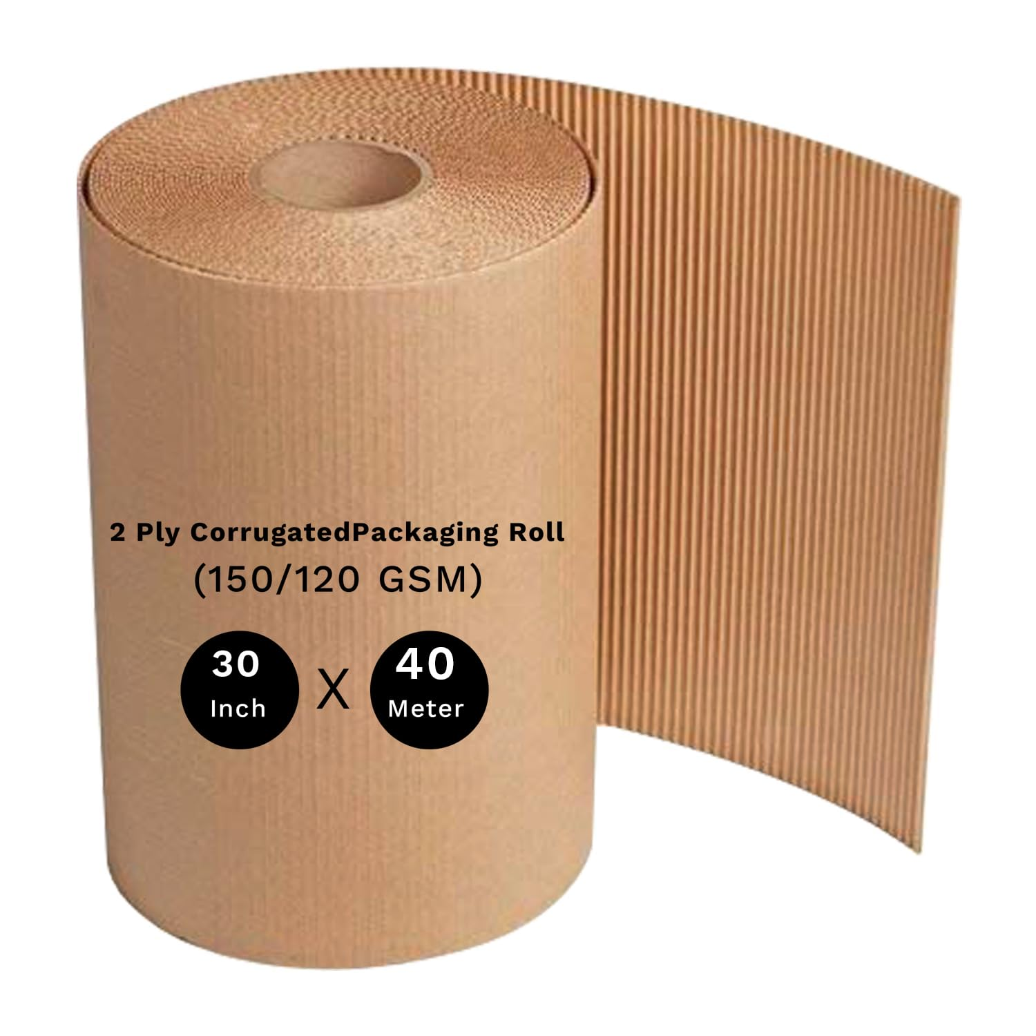 Durable 2-ply brown corrugated paper roll made with 150/120 GSM thickness for enhanced strength and shock absorption. Measuring 30 inches x 40 meters, it offers long-lasting coverage for secure wrapping, packing, shipping, and protecting fragile items during transit and storage.