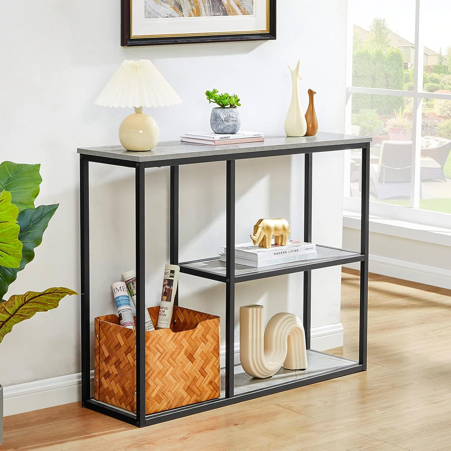 - 3-TIER ENTRYWAY TABLE – The narrow console table has a multiple intervals design for bringing function to store items, such as books, decorations, plants or photo frames without taking up space. Console Table Size: 31.5”x 11.8”x 31.5”.