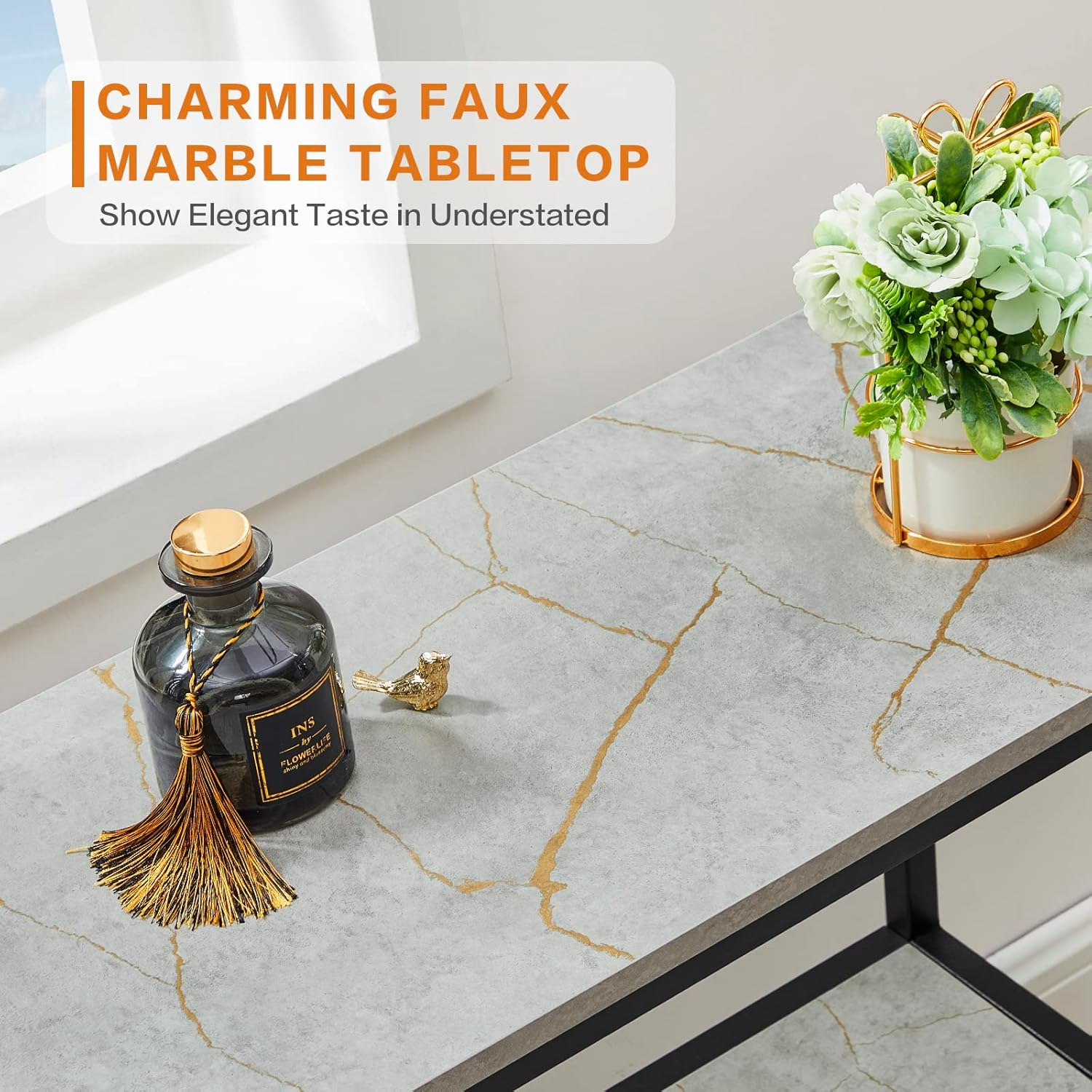 - MODERN CONSOLE TABLE – The combination of faux marble tabletop and black metal frame shows a charming industrial retro style. The elegant entryway table can decorate your home beautiful and show the master’s refined taste.