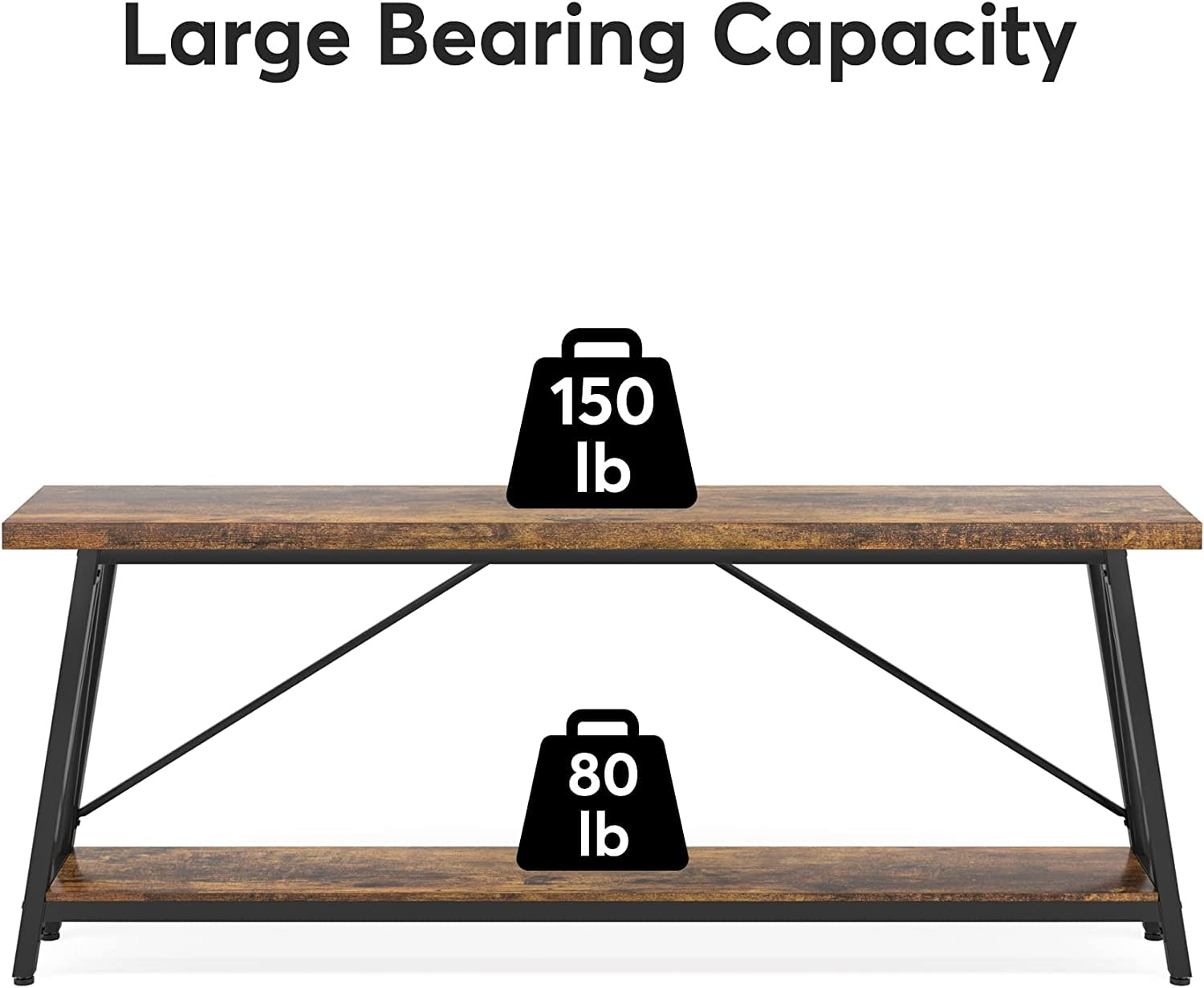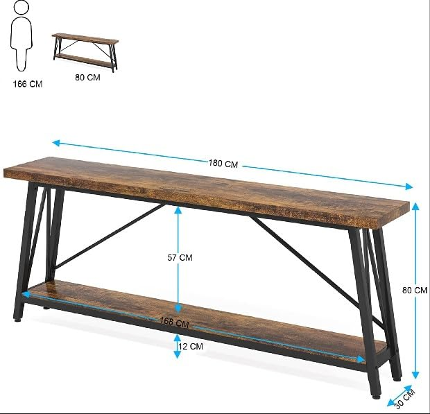 - STORAGE SPACE:180 x 30 cm wide entry way side table with 2 tier open shelves.