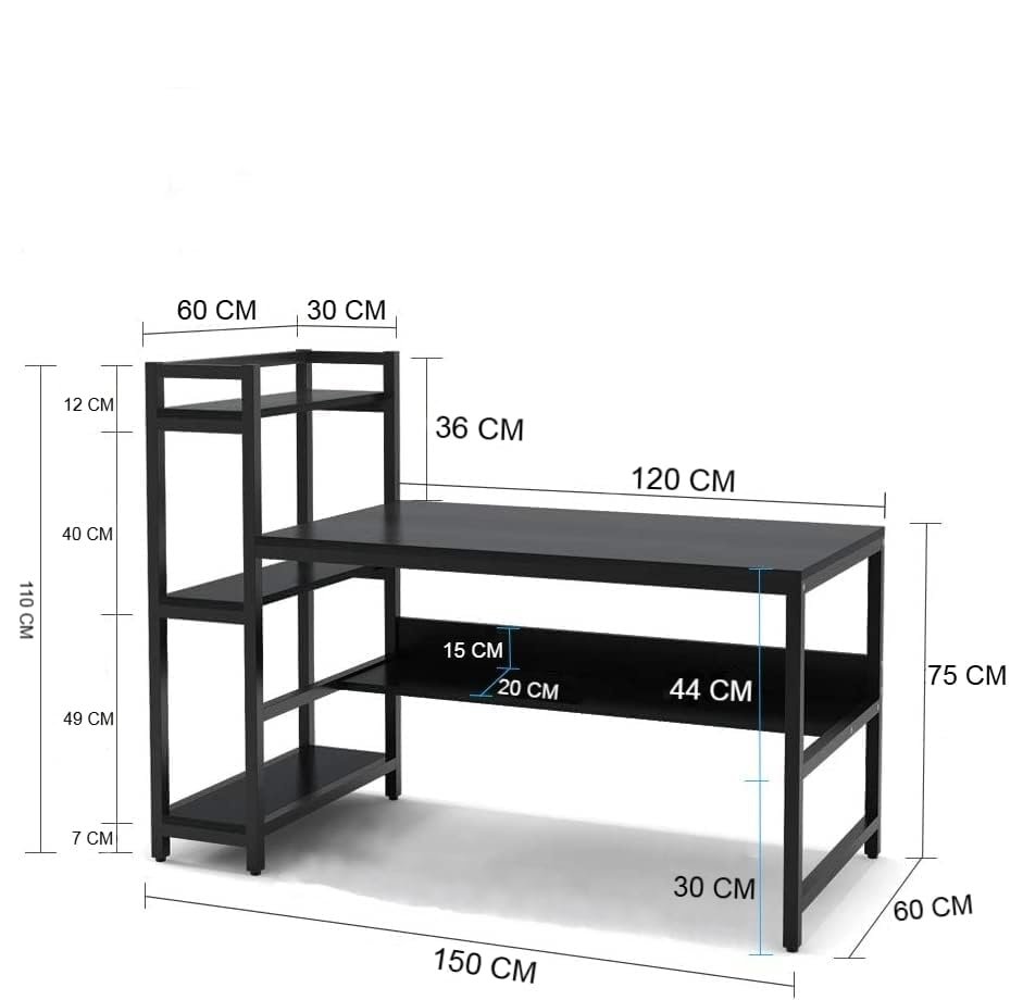🖥️ Spacious Design: Large 150×60 cm tabletop with 3 open shelves and lower storage for better organization.