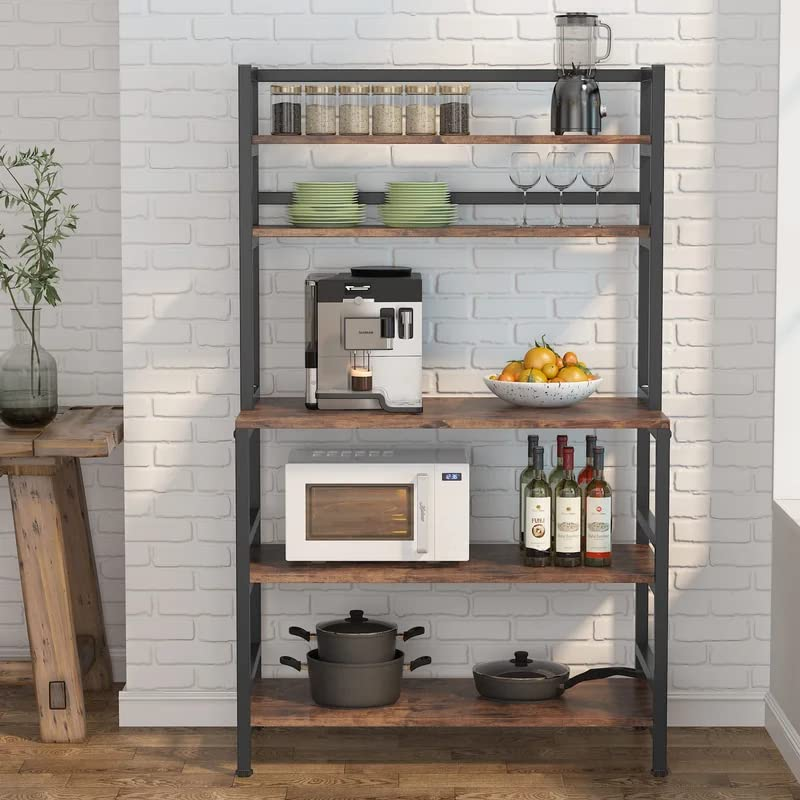 - Large capacity: 5-tier shelf can store toaster, spice, plate, dishes, etc. It is ideal for holding microwave, oven, and some of your other kitchenware or bits and pieces, as well as storing spice, plate dishes, and any other things you want.