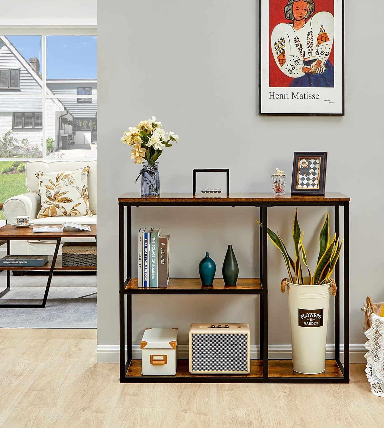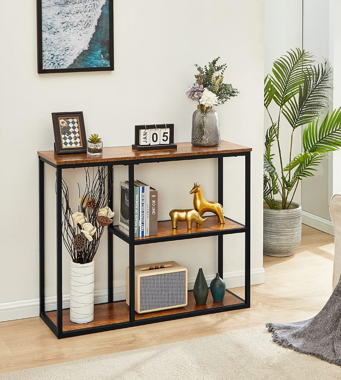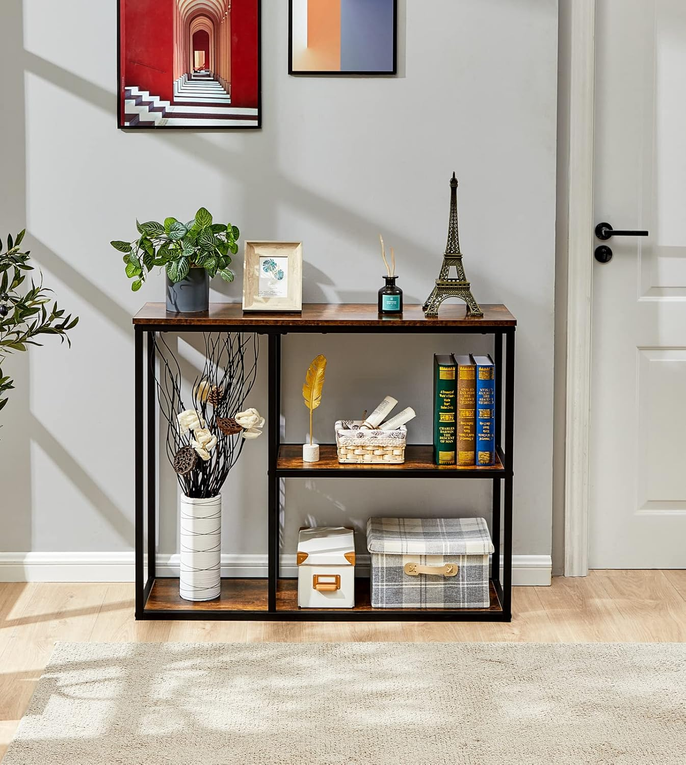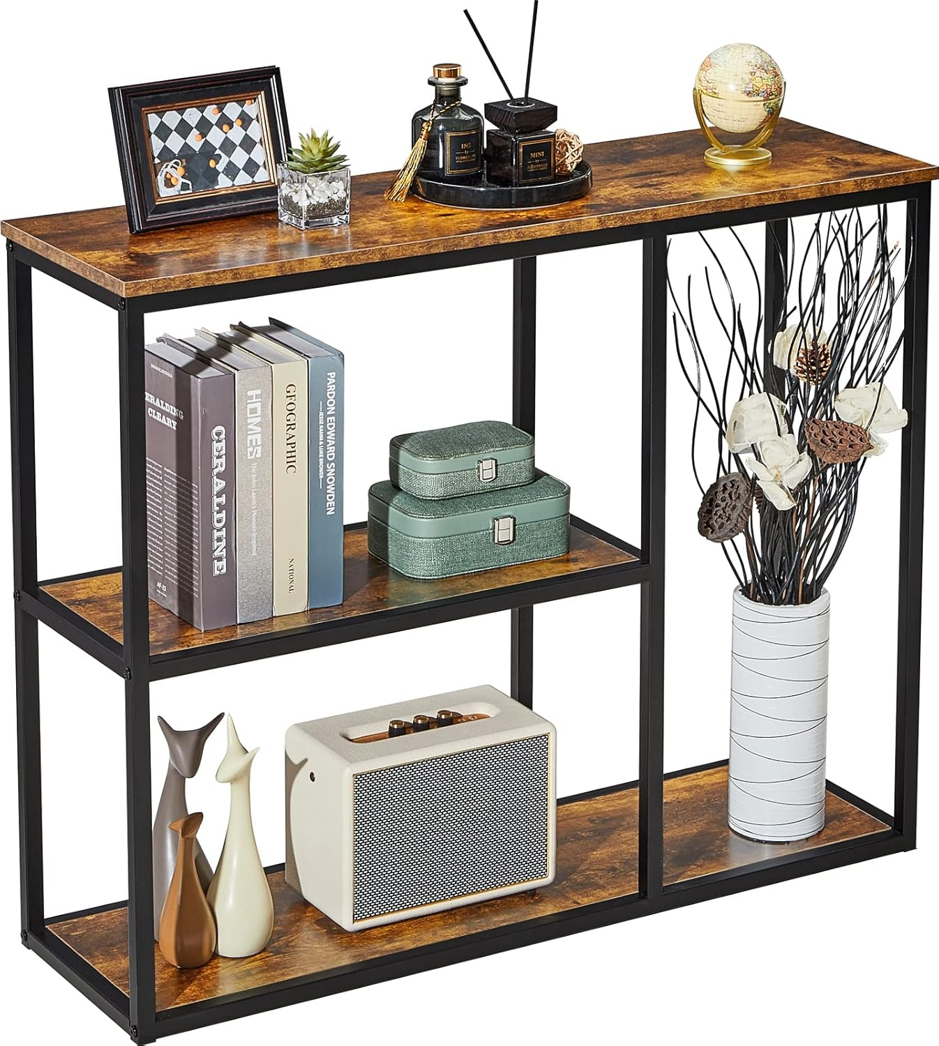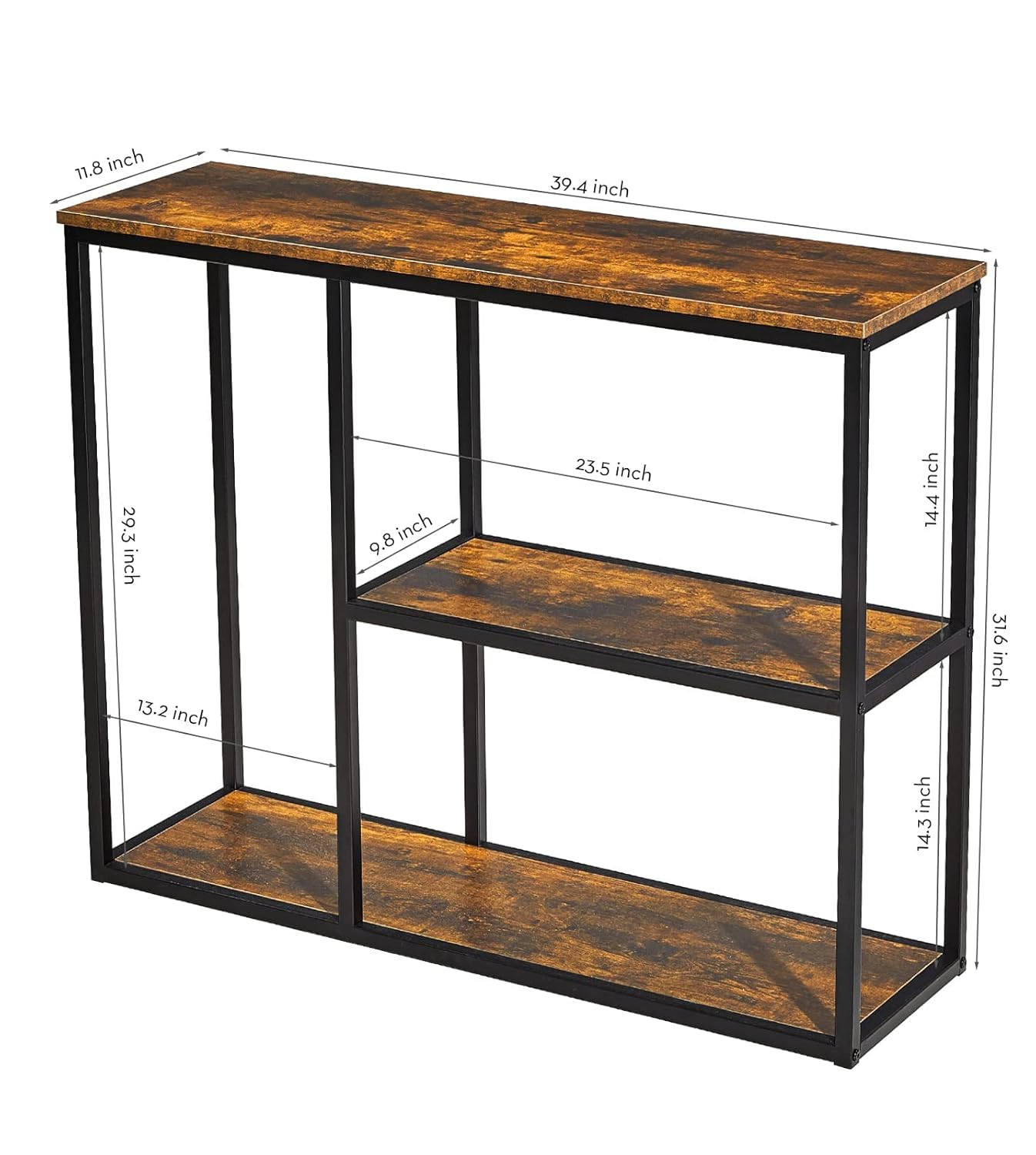 • 3-Tier Console Table: Multiple intervals provide you with large space to store items, such as books, decorations, plants, or photo frames. Console Table Size: 39.4”x 11.8”x 31.5”