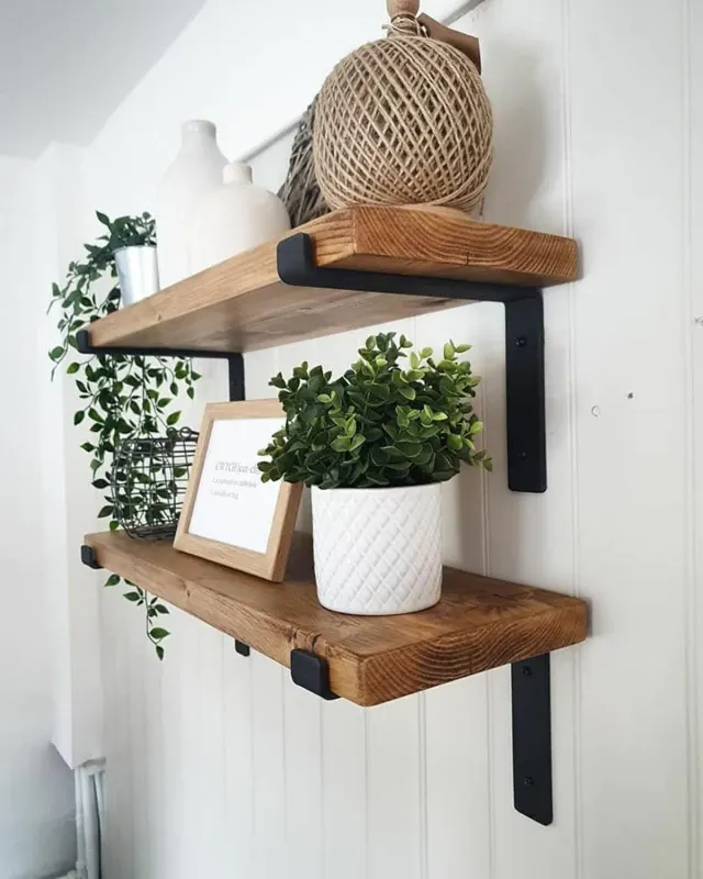 Bring strength and style together with the KRAYOG Industrial Wall Shelf. Made from 30mm solid pine wood and heavy-duty iron brackets, it’s perfect for displaying décor, books, or essentials in rustic modern spaces.