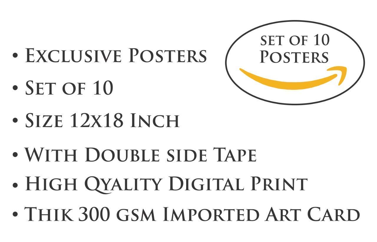 KRAYOG Inspirational Abstract Wall Poster Set – 45 x 30 x 0.2 cm (Pack of 10), Multicolour