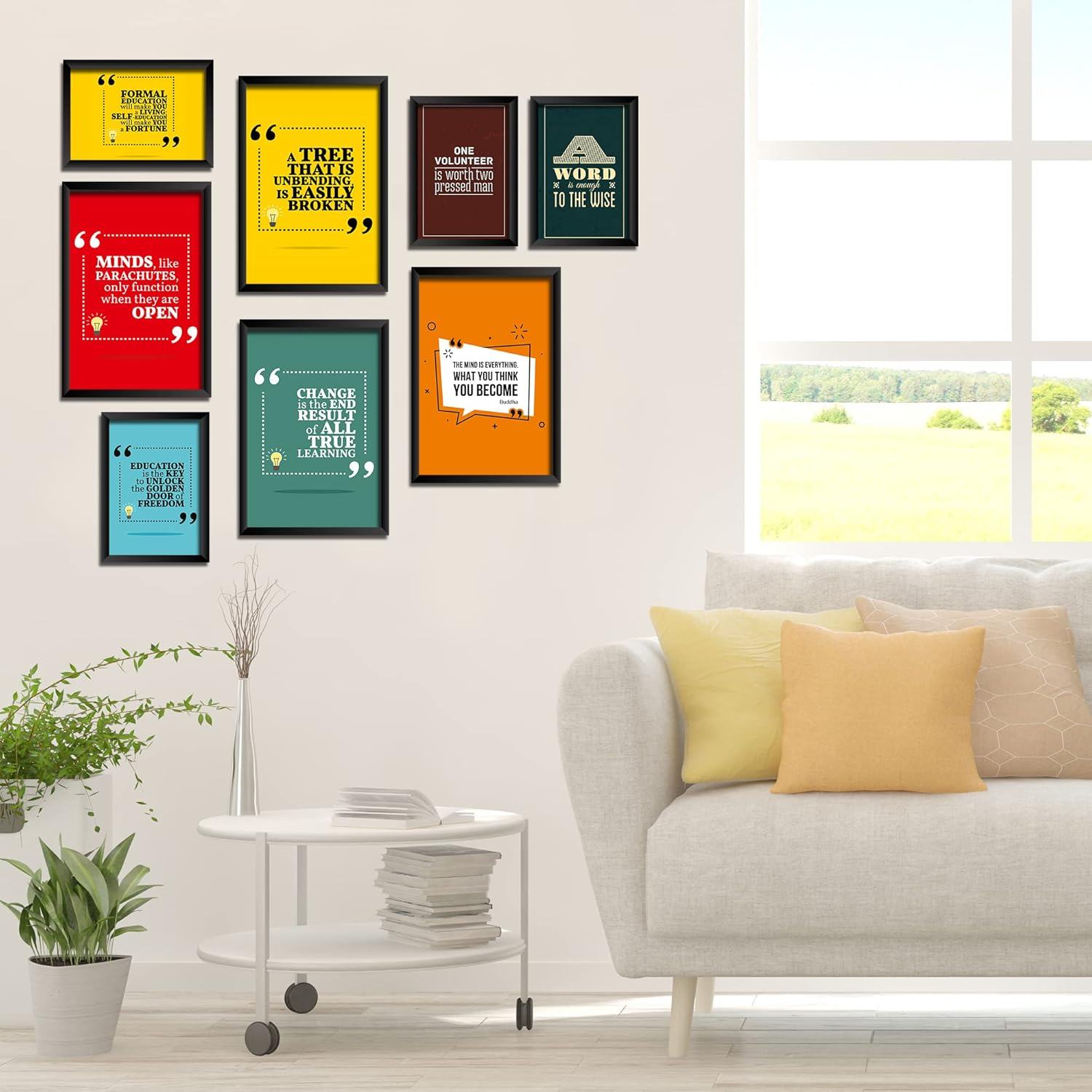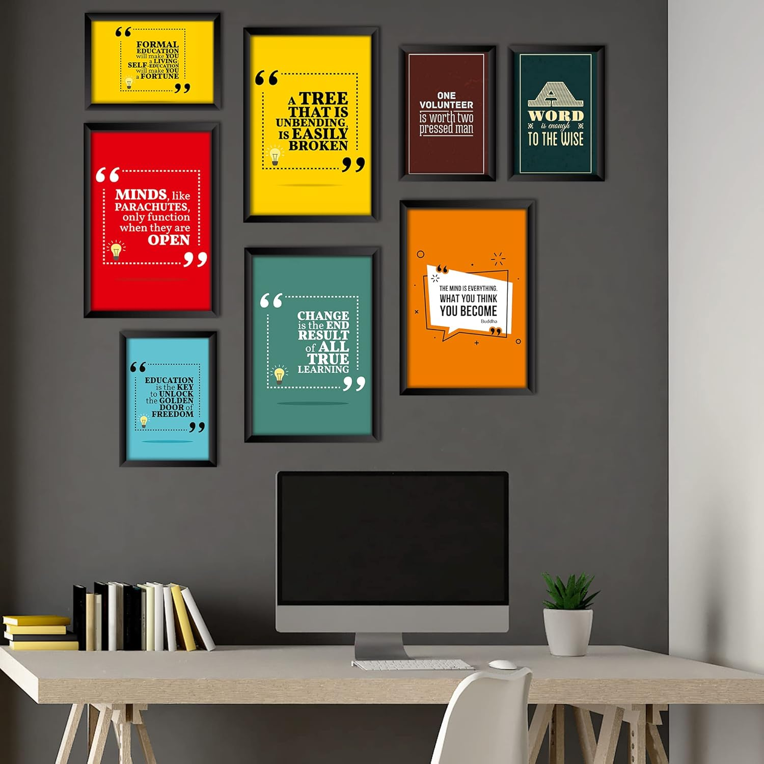 Refresh your space with this set of 8 inspirational and motivational framed wall art posters. Designed with uplifting quotes and modern typography, these frames are available in 9 x 12.5 inch and 12.5 x 18 inch sizes. Built with a protective front sheet and sturdy MDF backing, they’re ideal for decorating your living room, bedroom, office, or workspace.