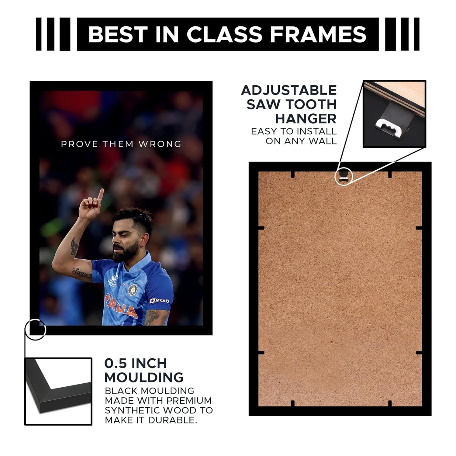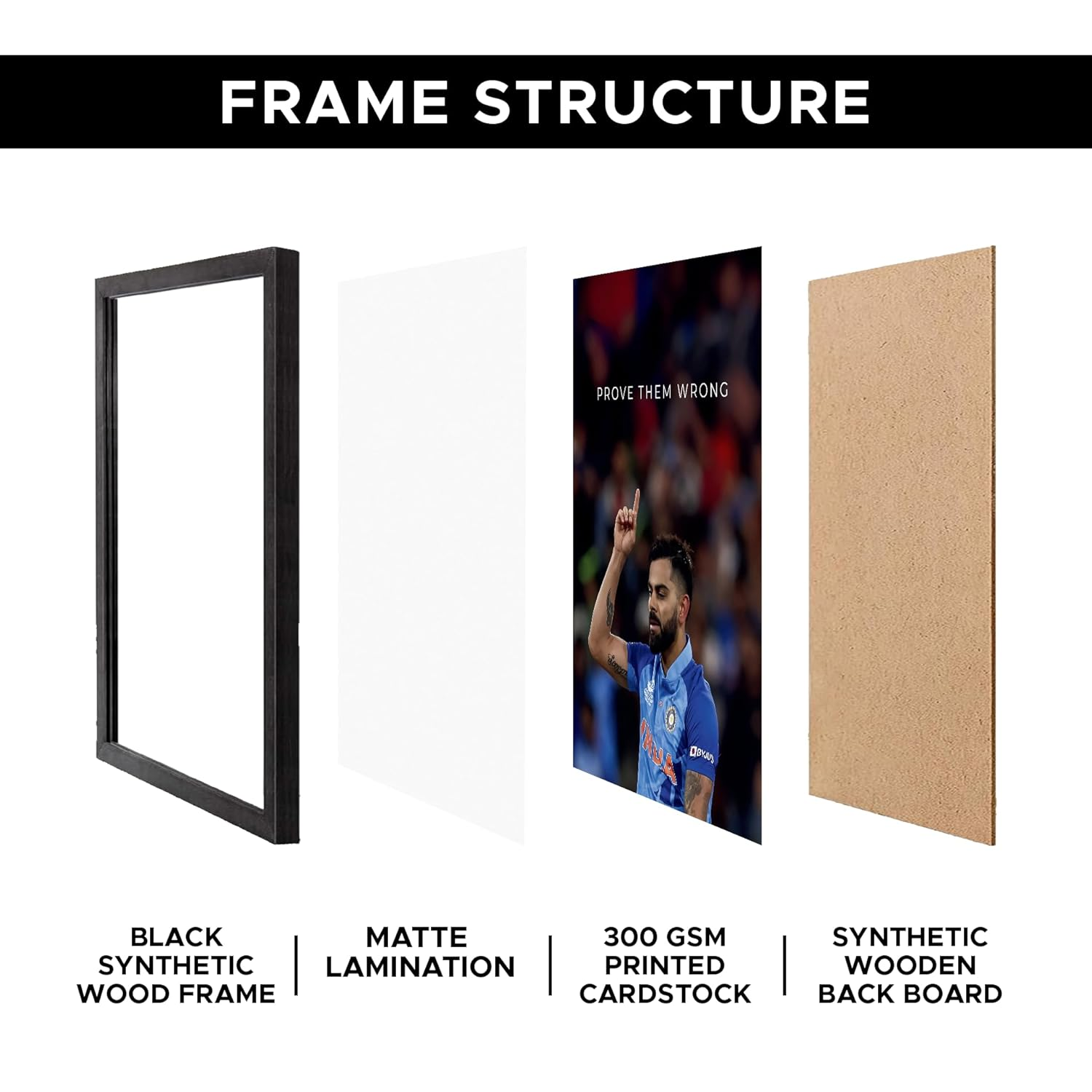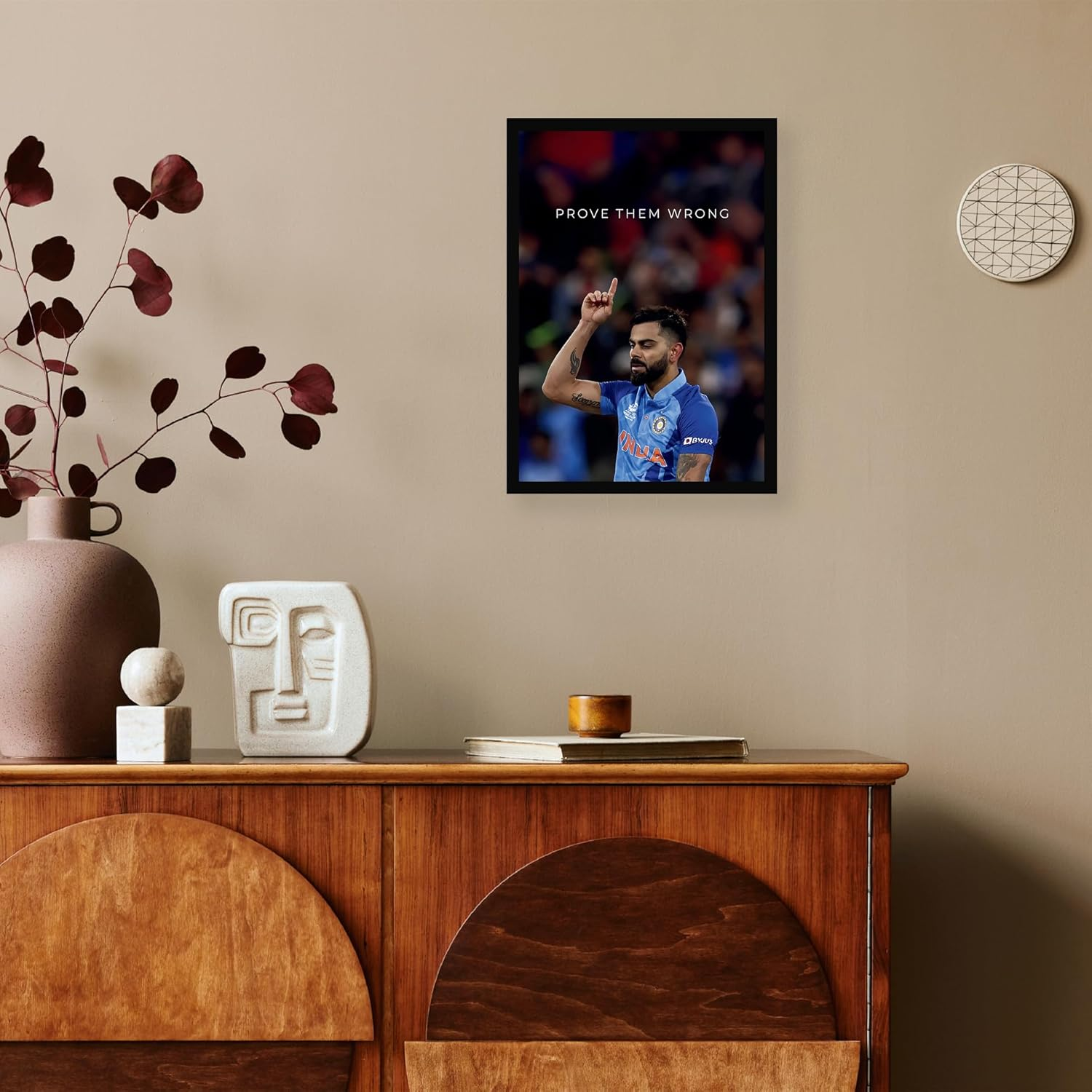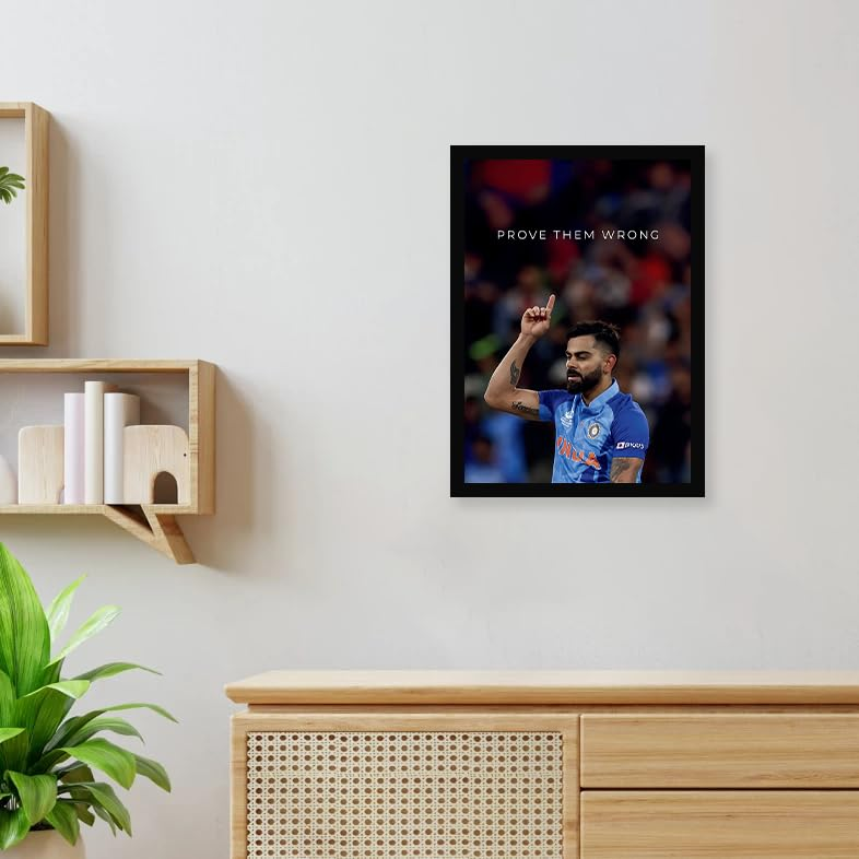 - ✔️ Premium A4 Motivational Cricket Poster – Features a powerful cricket-themed moment with the quote “Prove Them Wrong,” professionally framed and ready to hang in bedrooms, home gyms, offices, gaming setups, and study areas.