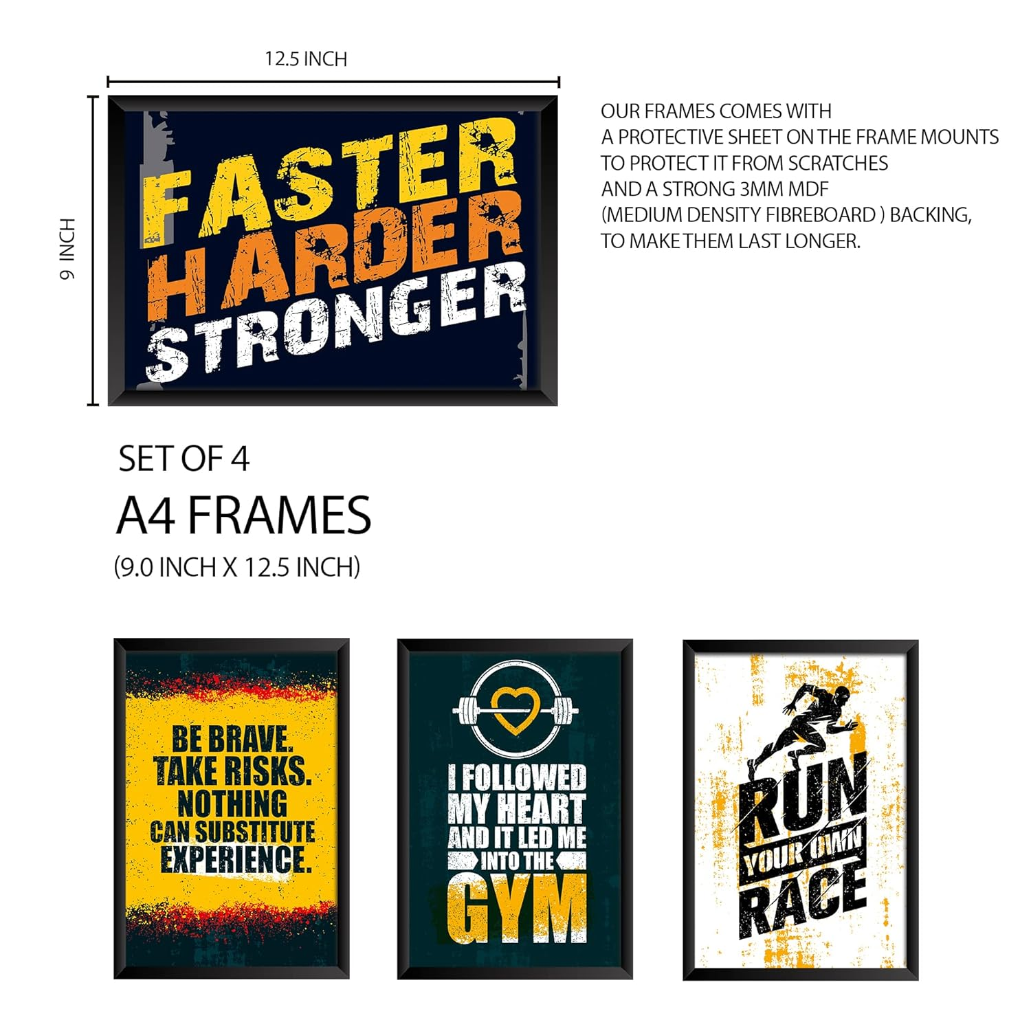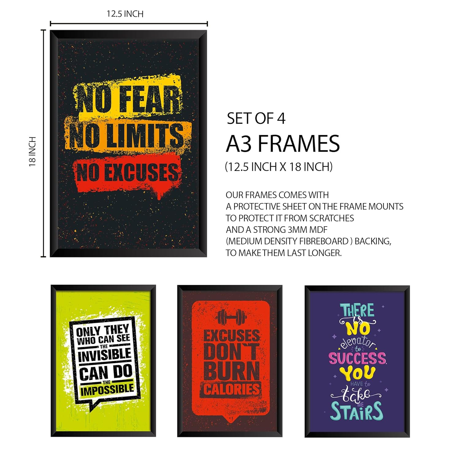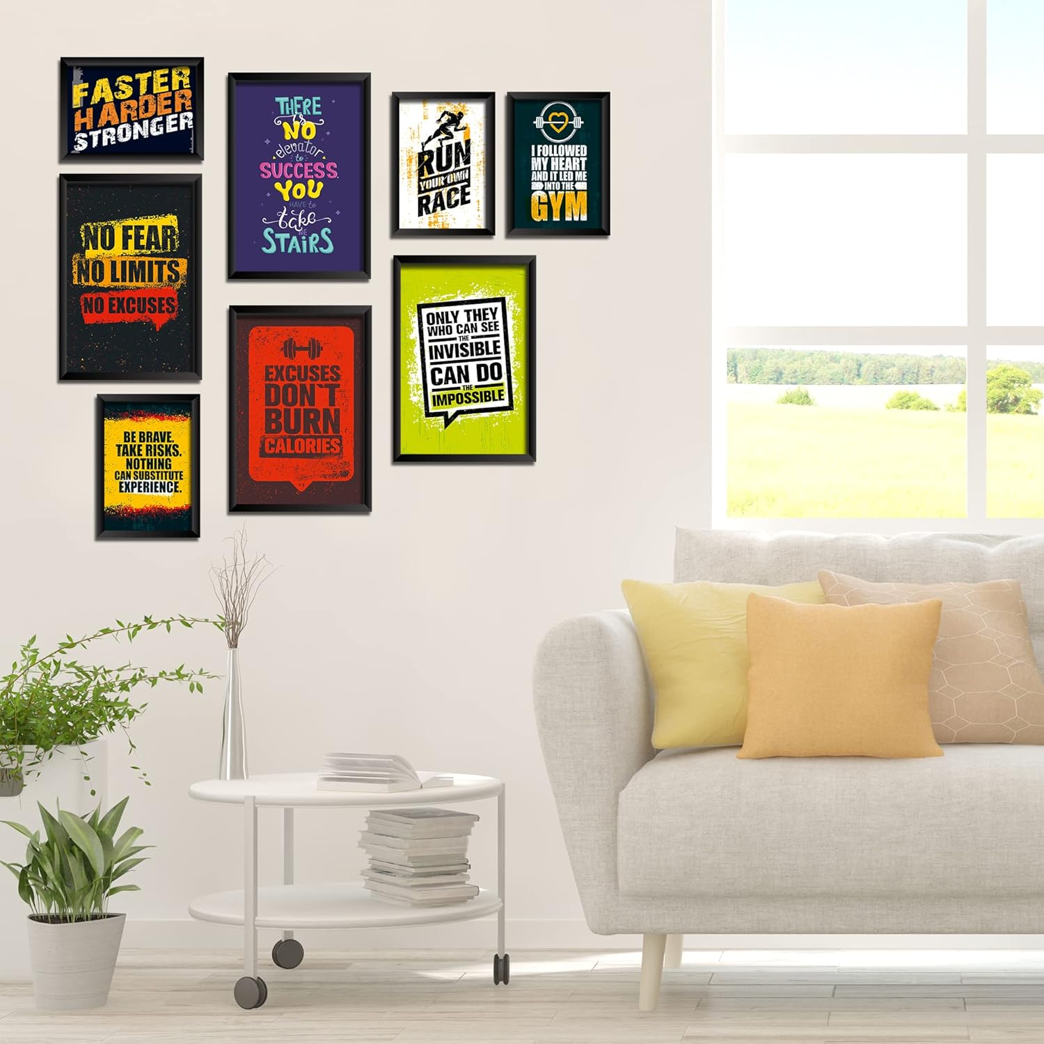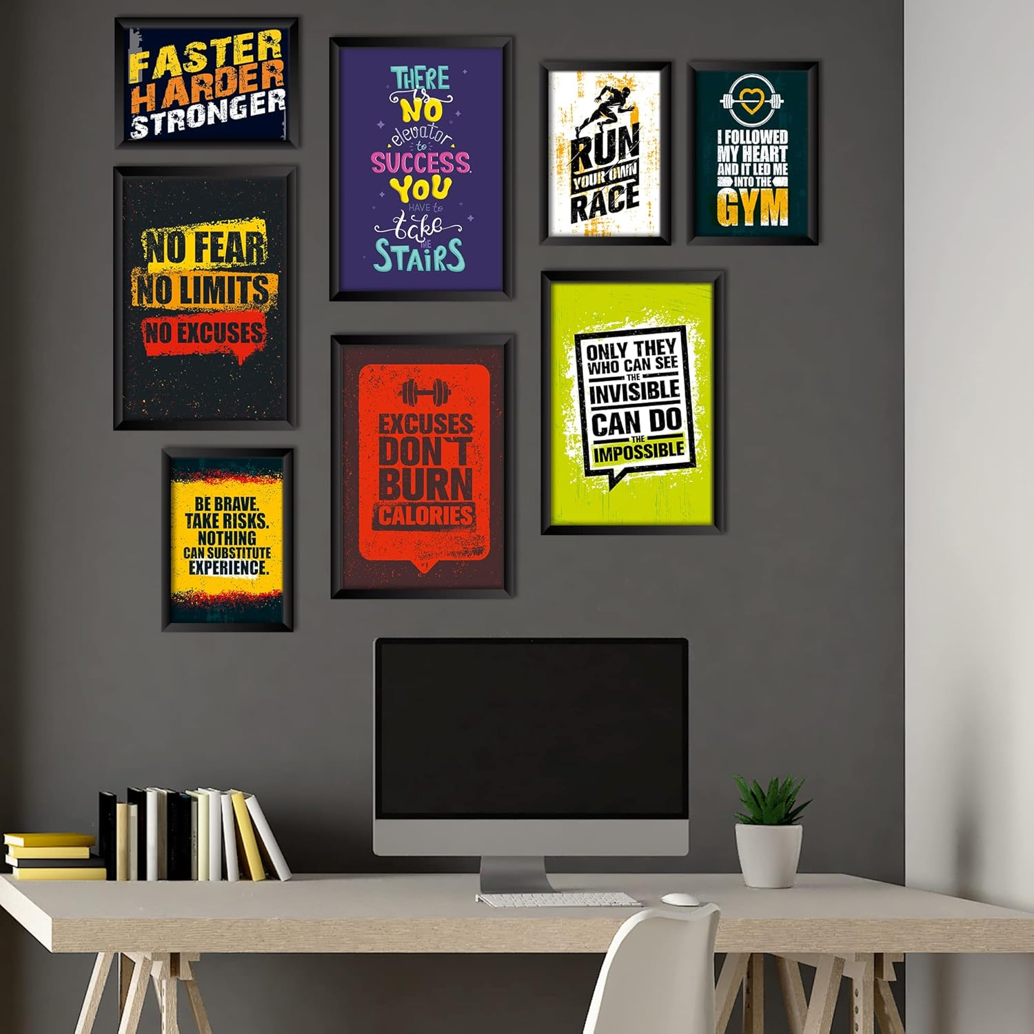 Elevate your space with this set of 8 inspirational motivational wall art frames designed to add positivity and energy to your living room, bedroom, office, or workspace. Featuring bold typography and vibrant designs, these framed quotes are available in A3 (12.5 x 18 inch) and A4 (9 x 12.5 inch) sizes. Each frame includes a protective front sheet and durable 3mm MDF backing for long-lasting quality and scratch resistance—perfect for modern home décor and gifting.