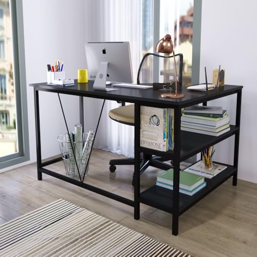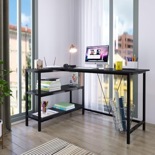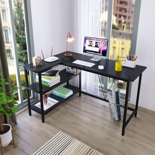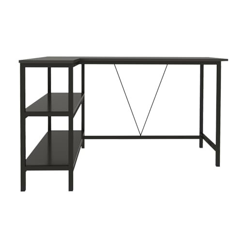 🖥️ Spacious L-Shape Design: Offers ample space for laptops, monitors, books, and accessories.