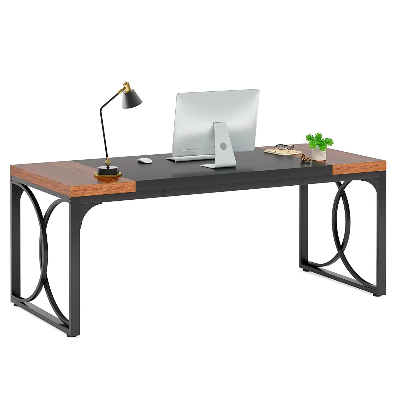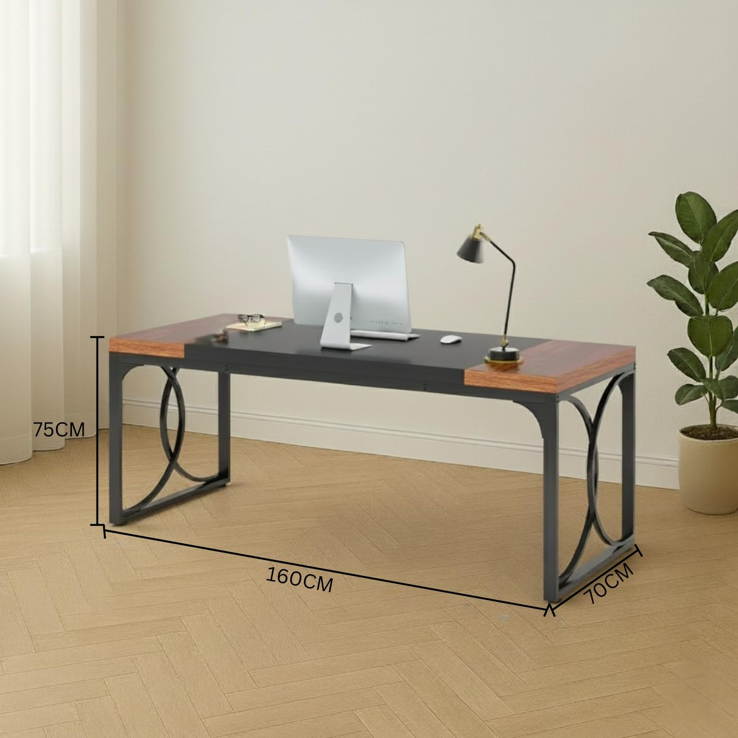 Spacious 160 cm D-Type office table crafted for modern home offices. Featuring a sleek black frame with a rustic brown top, this large computer desk offers ample workspace for laptops, PCs, and accessories—ideal for work, study, and productivity.