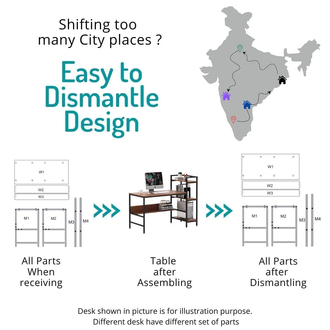 • PHYSICAL ATTRIBUTES: Product Material: High grade prelam engineering wood with natural wood grain finish | Product Color: Black & Rustic Brown | Product Weight: 30.1Kgs