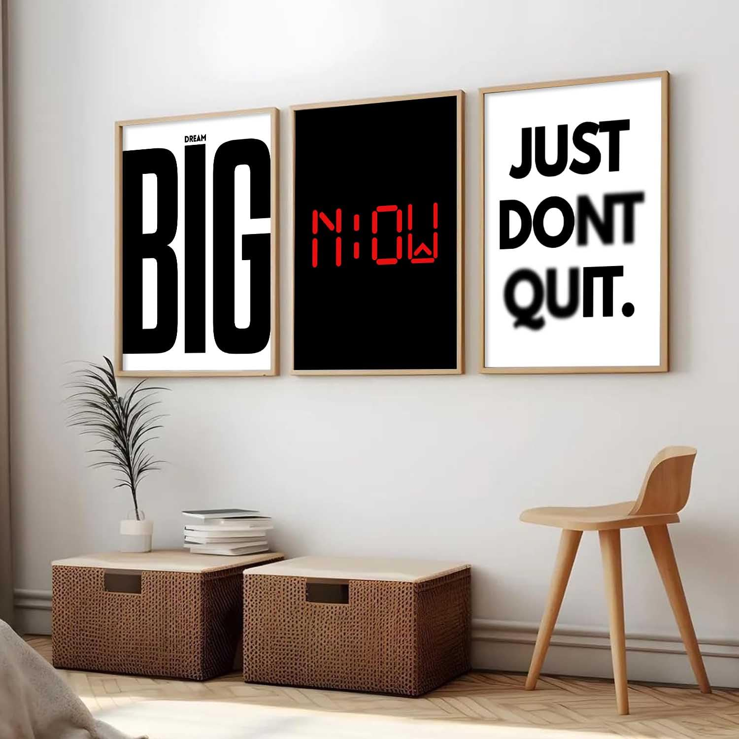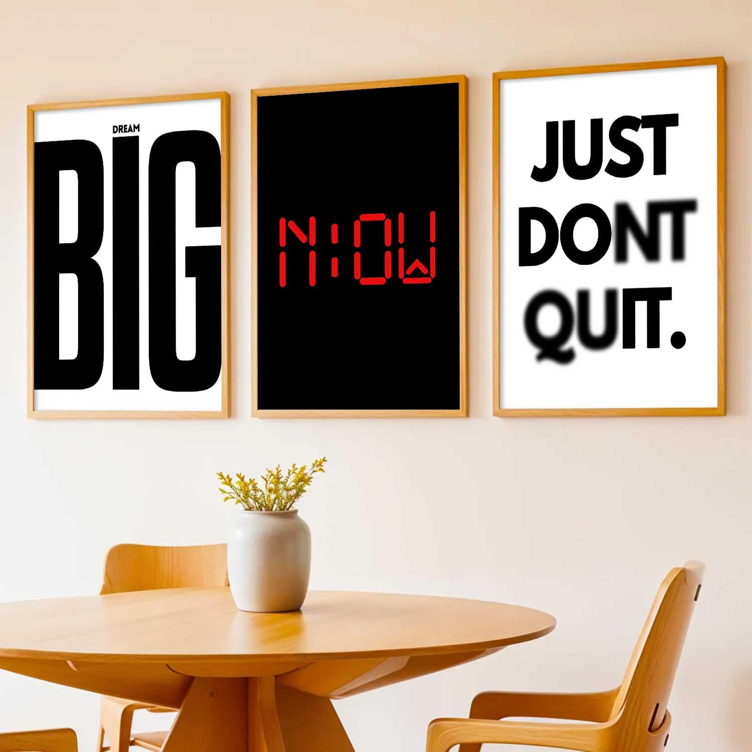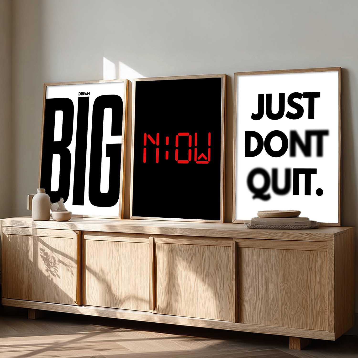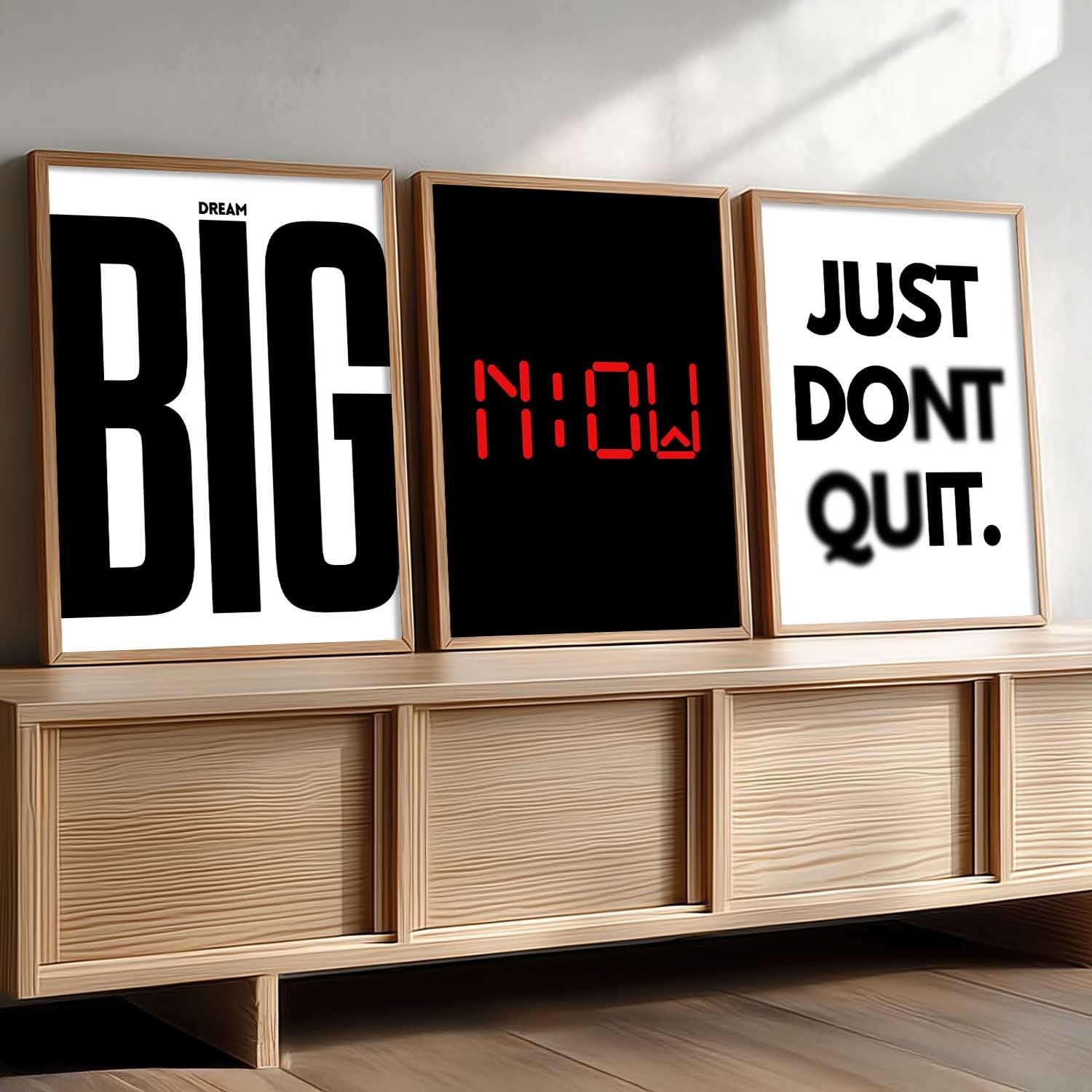 Transform your space with this set of 3 large framed motivational quote posters (13 x 17 inch each). Featuring bold, modern typography with high-quality 300 DPI prints and durable 3/4 inch frames, these aesthetic wall art pieces are perfect for inspiring positivity in your office, living room, or study room.