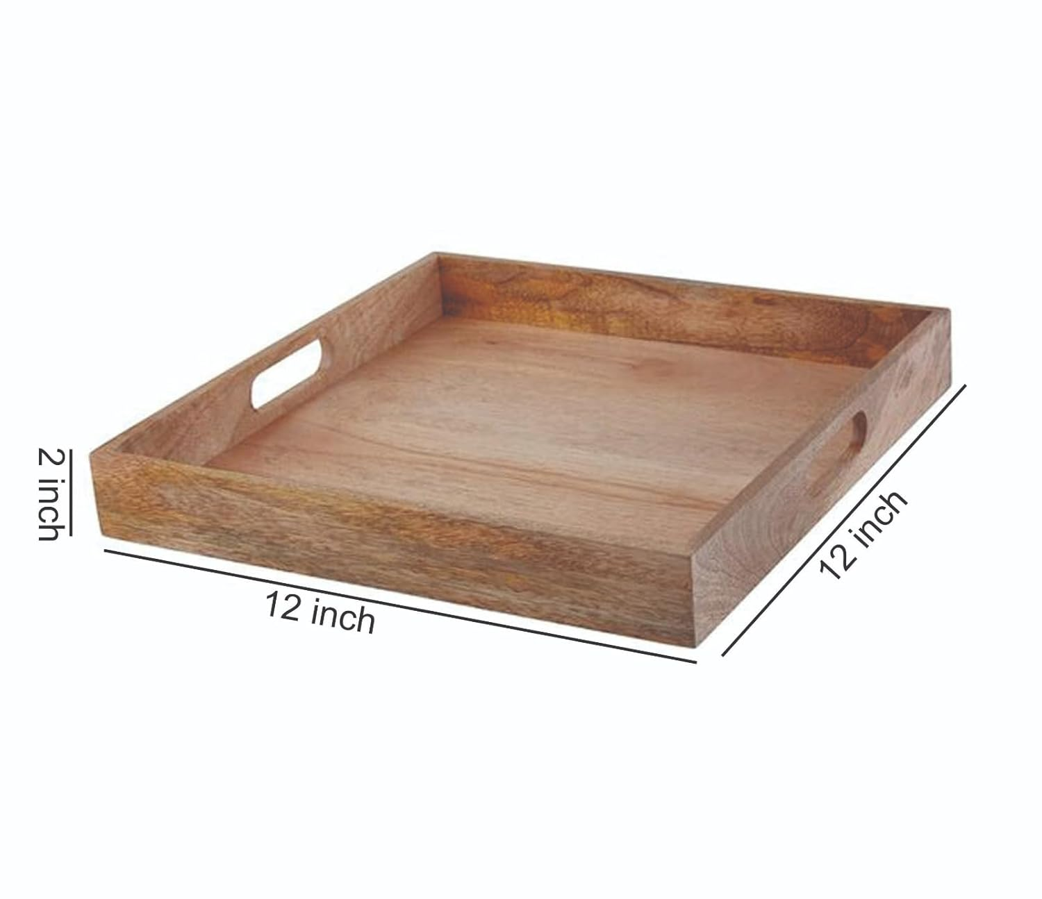 Crafted from premium mango wood, this large rectangular serving tray features sturdy cutout handles for easy carrying. Perfect for serving breakfast in bed, coffee, snacks, or drinks, it also doubles as a stylish coffee table décor piece for everyday use and special gatherings. Durable, functional, and finished in a beautiful natural tone to complement any home setting.