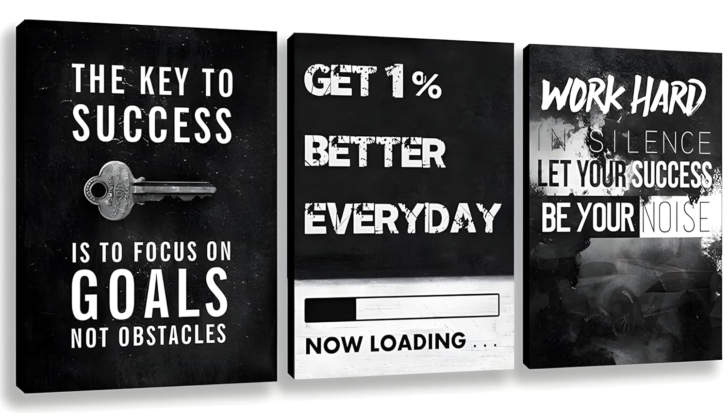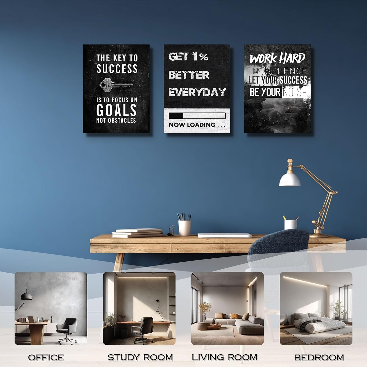 - Inspirational Set: Includes 3 bold black motivational wall art prints designed to inspire focus, ambition, and success in any home or office space.